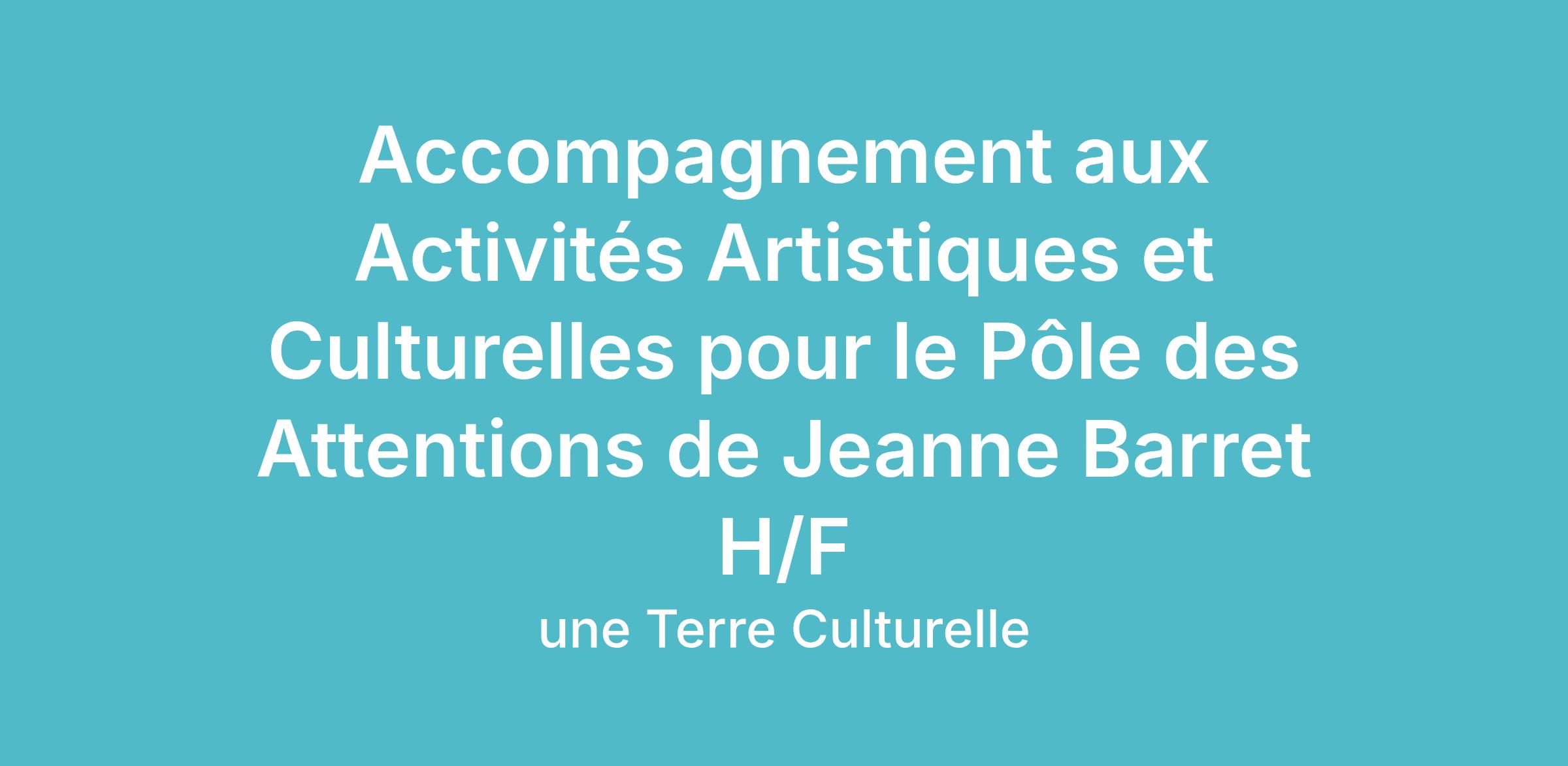 En quelques mots...Le/la service civique assiste les artistes intervenant.e.s du Pôle des attentions pour mener à bien l'organisation, la gestion des ateliers et des moments de convivialité (rencontres, projections, repas partagés, etc.) selon un calendrier établi.- Association Jeanne Barret, 13015 MarseilleVotre mission de Service CiviqueObjectifsLe projet a pour but de revendiquer les questions des droits culturels, et des droits aux espaces culturels. Les projets artistiques participatifs mêlent une démarche centrée sur l'oeuvre et une politique centrée sur les relations entre les personnes.ActionsAllez à la rencontre dans l'espace public, dans les écoles, avec les habitants, en lien avec les structures locales. Le/la service civique pourra être amené·e à soutenir l'équipe chargée de la coordination des événements spéciaux, programmés des Ateliers Jeanne Barret (vernissage, soirées, débats, etc.).L'organisme d'accueil, informations pratiquesUNE TERRE CULTURELLEDepuis une vingtaine d'années maintenant, l'association Une Terre Culturelle organise des rencontres internationales en direction de jeunes avec moins d'opportunités de mobilité et développe des formations à l'apprentissage interculturel en direction d'acteurs-trices de terrain du domaine socio-éducatif et culturel. Elle coordonne par ailleurs une centaine de volontaires en Service Civique, Volontariat Franco-Allemand et Service Volontaire Européen par an. Favoriser la mobilité des jeunes citoyen-ne-s dans la zone euro-méditerranéenne à des fins d'insertion sociale et professionnelle. Former à la pédagogie de l'apprentissage interculturel pour favoriser une citoyenneté européenne et mondiale. Faire découvrir des cultures différentes et leurs réalités sociales, casser les préjugés par la connaissance de l'Autre et de soi-même.Localisation de la missionUNE TERRE CULTURELLE4 chemin des bessons 13014 Marseille 14Mon contactJulie PoteloinAnnonce n°M260003510