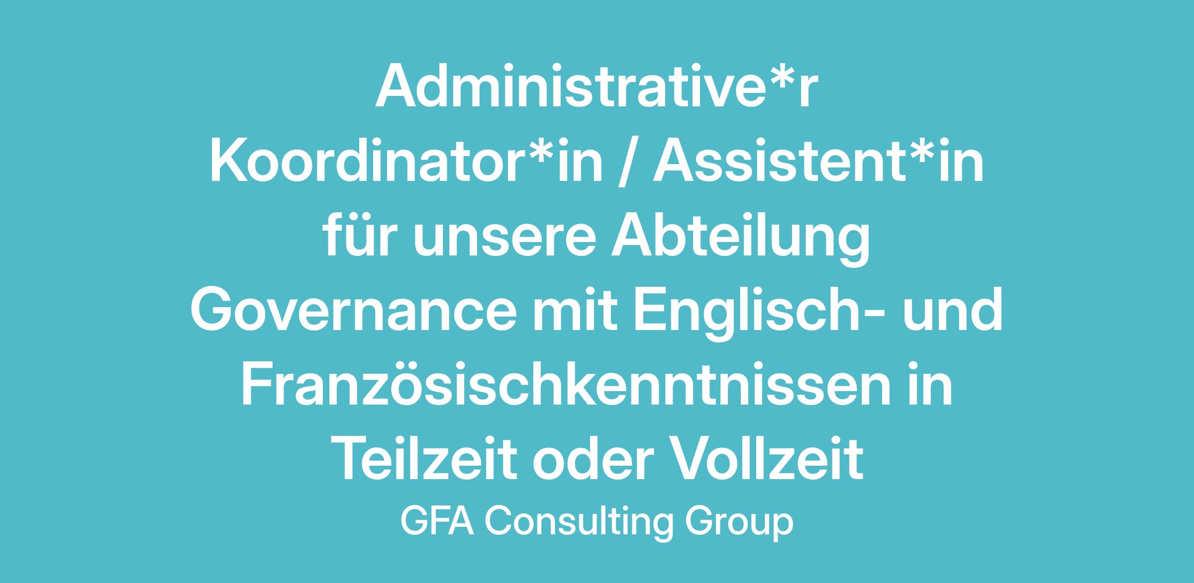 Wenn du unsere Leidenschaft für die Internationale Zusammenarbeit teilst und gerne in einem internationalen Umfeld arbeitest, in dem du einen Beitrag zur Gestaltung einer besseren Welt leisten kannst, werde Teil des GFA Teams als: Administrative*r Koordinator*in / Assistent*in für unsere Abteilung Governance mit Englisch- und Französischkenntnissen in Teilzeit oder Vollzeit