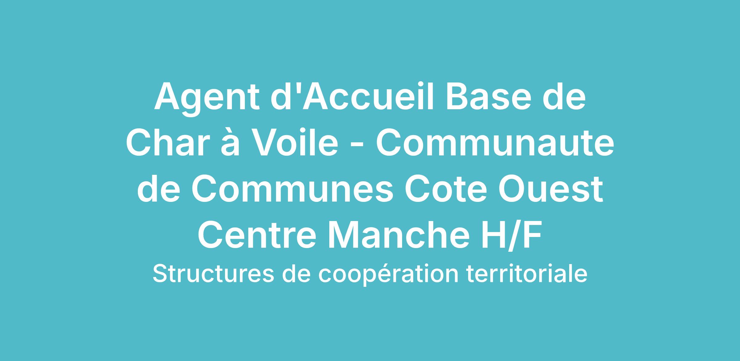 La communauté de communes Côte Ouest Centre Manche, située dans le département de La Manche, compte 30 communes et 22 500 habitants. Nichée entre terre et mer, le territoire est apprécié pour son cadre de vie proche de la nature, où il fait bon vivre. Organisés en trois pôles, près de 140 agents ont à coeur d'offrir des services de proximité de qualité à la population. Pour sa base de Char à Voile, la communauté de communes est à la recherche d'un agent d'accueil (homme/femme).