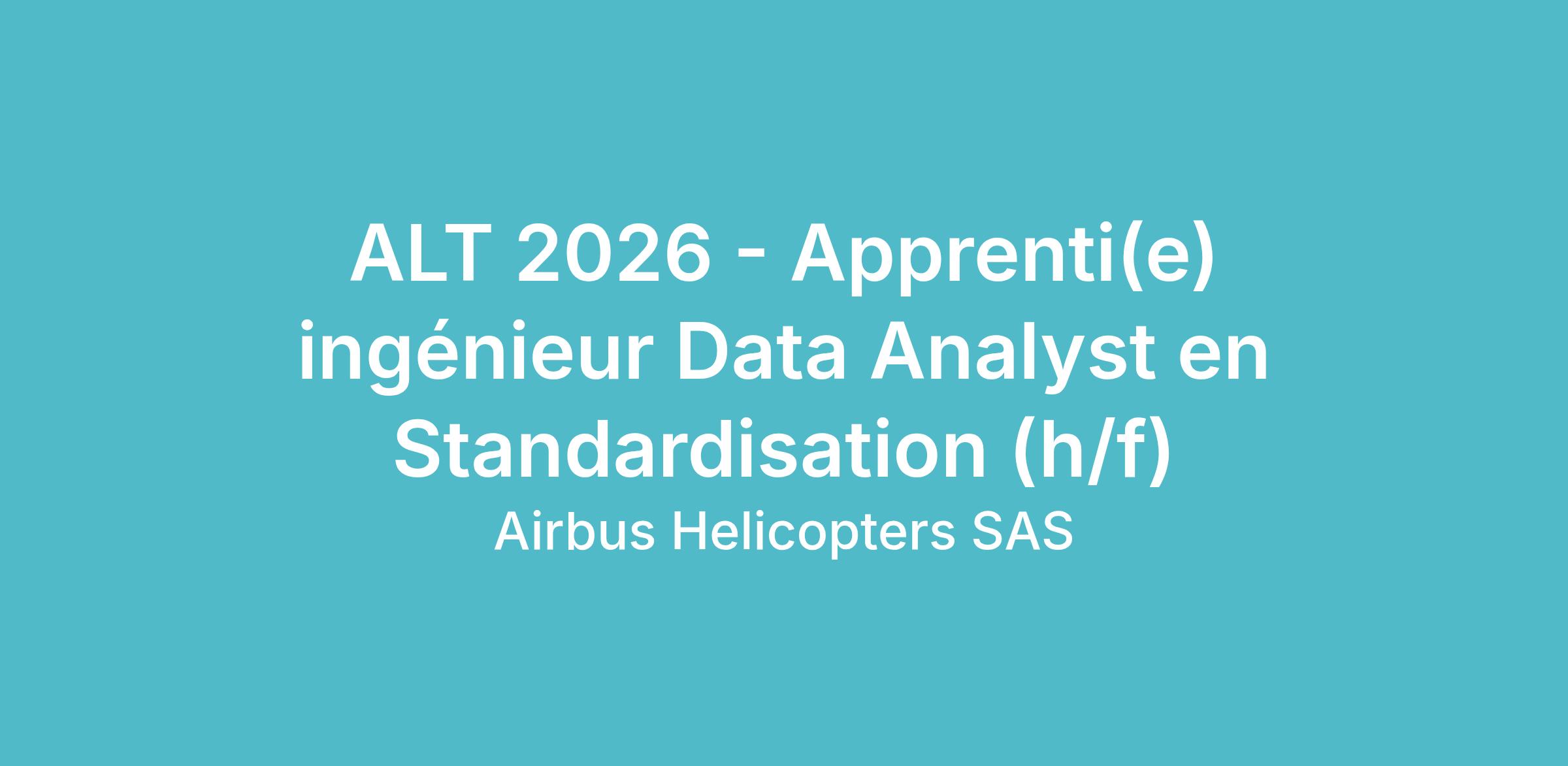 Une offre d’apprentissage intitulée « Apprenti(e) ingénieur Data Analyst en Standardisation (h/f) » vient de s'ouvrir au sein d’Airbus Helicopters sur son site de Marignane.