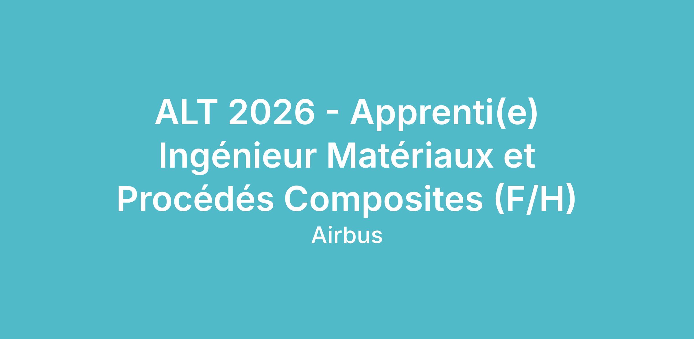 Une offre d’apprentissage intitulée « ALT 2026 - Apprenti(e) Ingénieur Matériaux et Procédés Composites (F/H) » vient de s'ouvrir au sein du département Composite Technology Materials, Processes & Test. Le poste est basé à Toulouse, entre le Bureau d'Études et le Laboratoire.