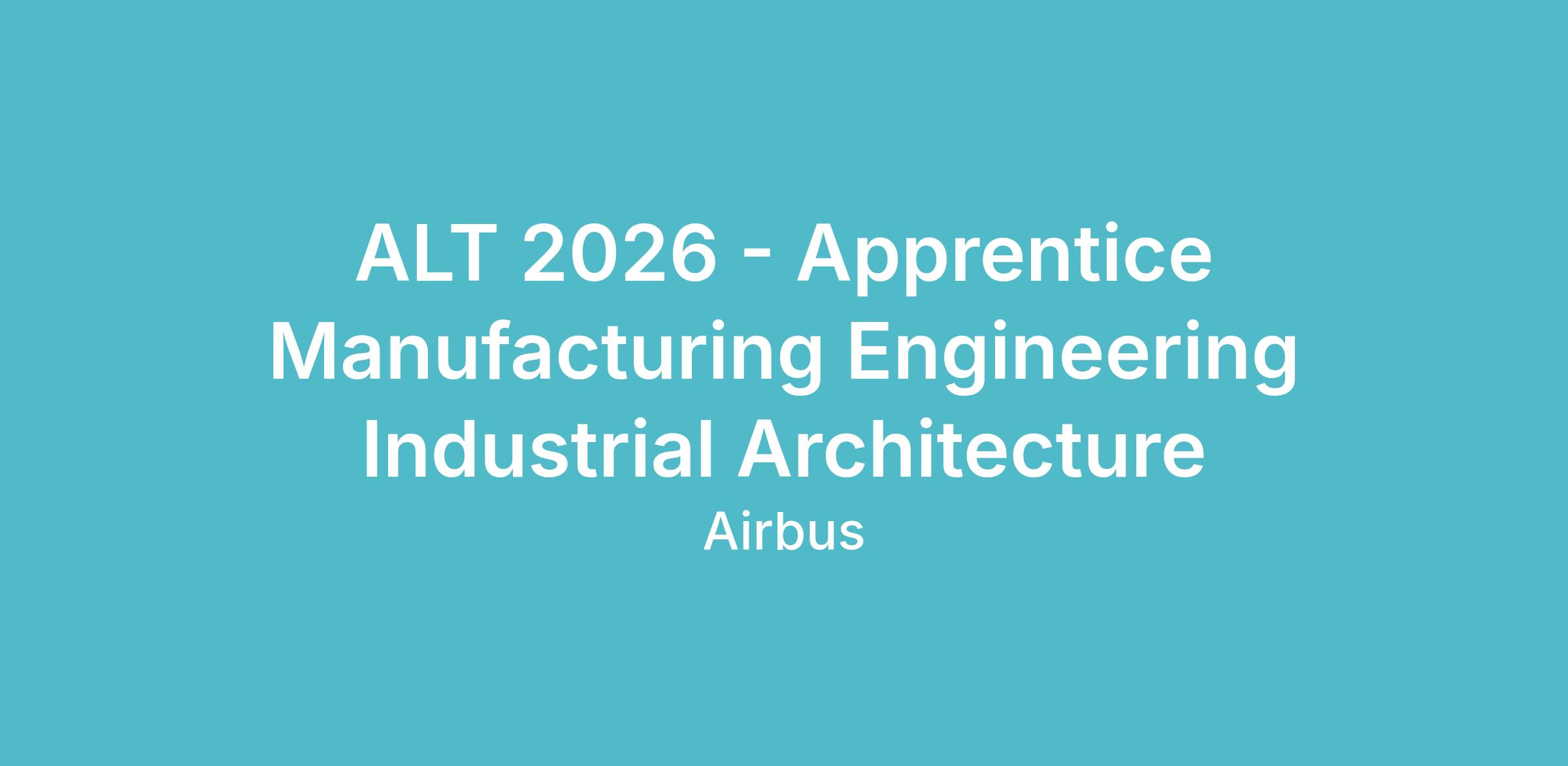 An apprenticeship offer entitled "Apprentice Manufacturing Engineering Industrial Architecture (M/F)" has just opened within Airbus Operations on Toulouse site.
