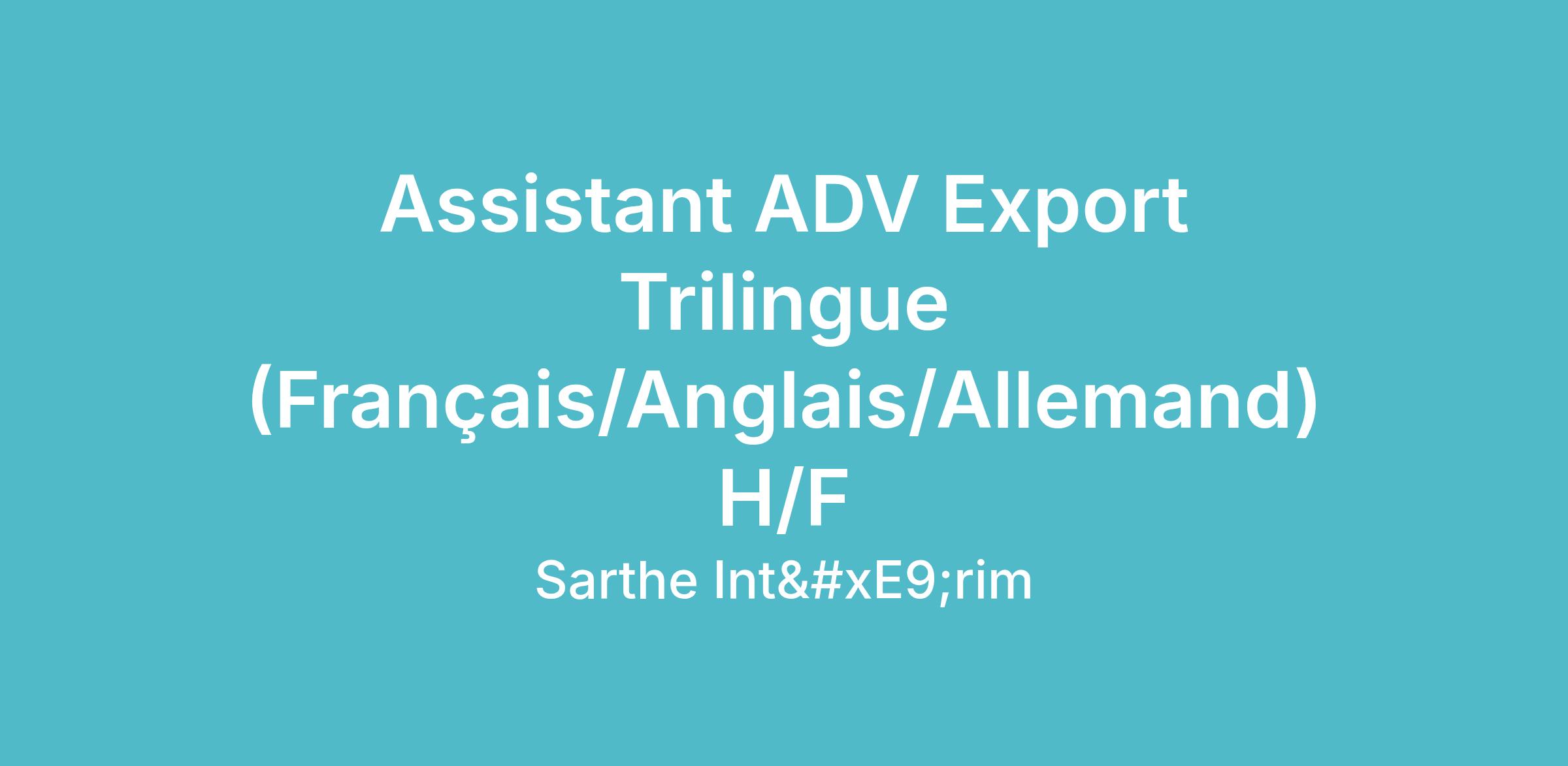 Nous sommes à la recherche d'un Assistant ADV Export Trilingue (Français/Anglais/Allemand) pour l'un de nos clients.