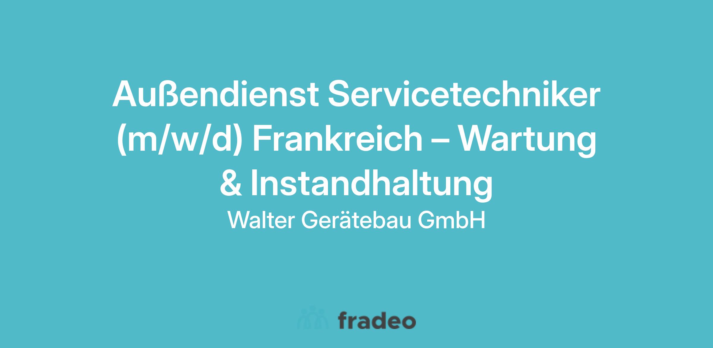Für unser Team suchen wir einen Servicetechniker (m/w/d) Frankreich – Wartung & Instandhaltung.
