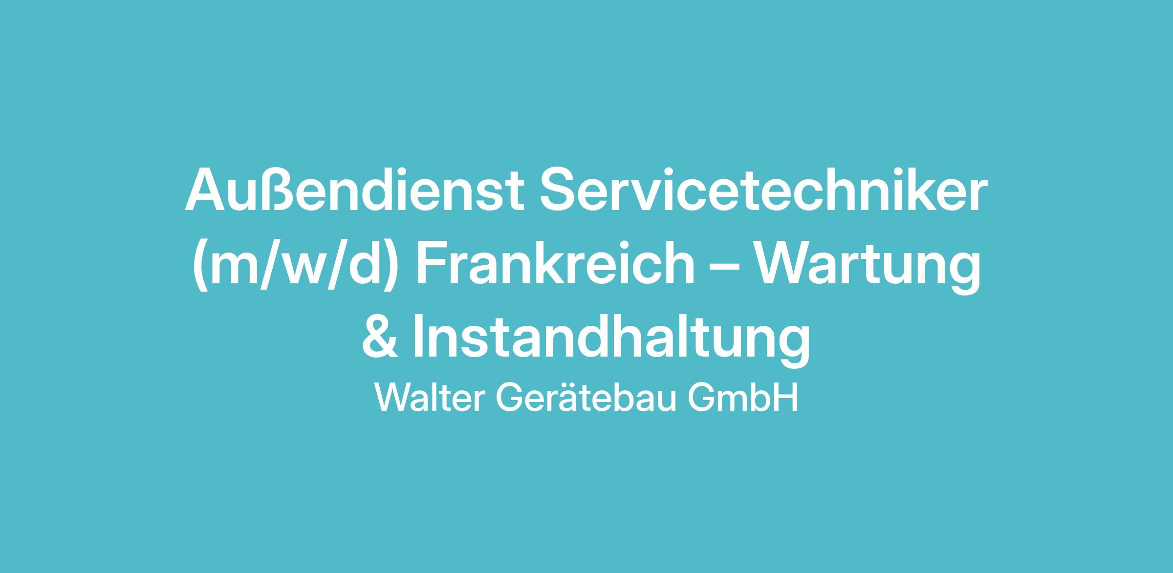 Für unser Team suchen wir einen Servicetechniker (m/w/d) Frankreich – Wartung & Instandhaltung.
