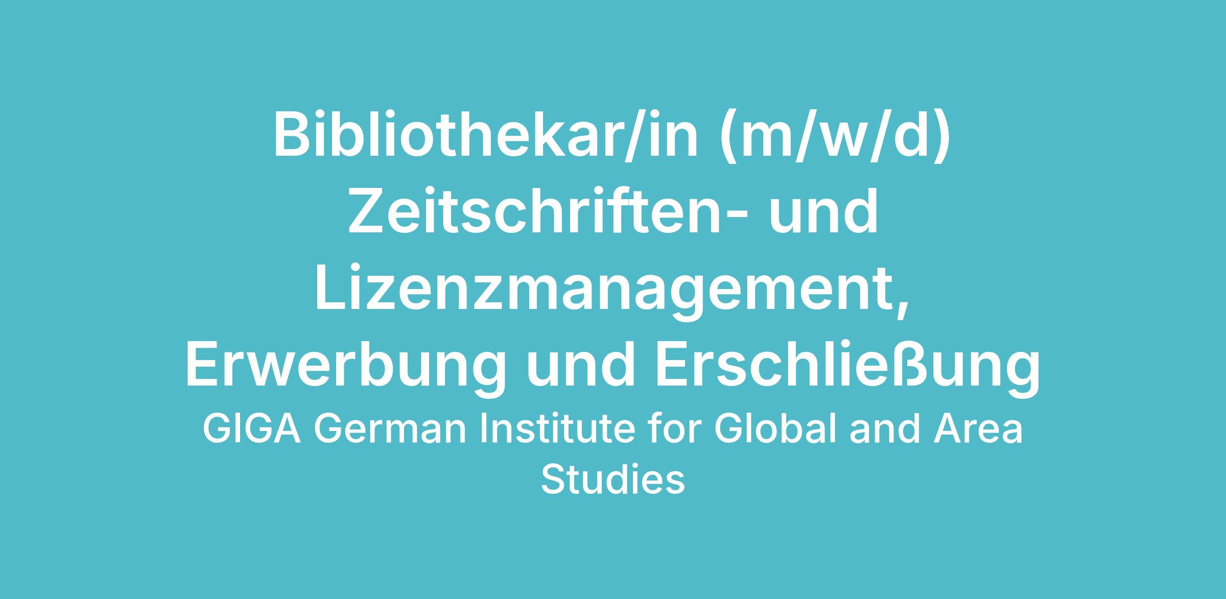 Das German Institute for Global and Area Studies (GIGA) / Leibniz-Institut für Globale und Regionale Studien ist ein unabhängiges, sozialwissenschaftliches Forschungsinstitut mit Sitz in Hamburg. Es analysiert politische, ökonomische und soziale Entwicklungen in Afrika, Asien, Lateinamerika und Nahost, und verknüpft dieses Wissen mit Fragen von globaler Bedeutung. Es verbindet regionenspezifische Analysen mit innovativer vergleichender Forschung zu politischer Verantwortlichkeit und Partizipation, Frieden und Sicherheit, Globalisierung und Entwicklung sowie zu globalen Ordnungen und Außenpolitiken. Das GIGA bietet zum nächstmöglichen Zeitpunkt eine Stelle als