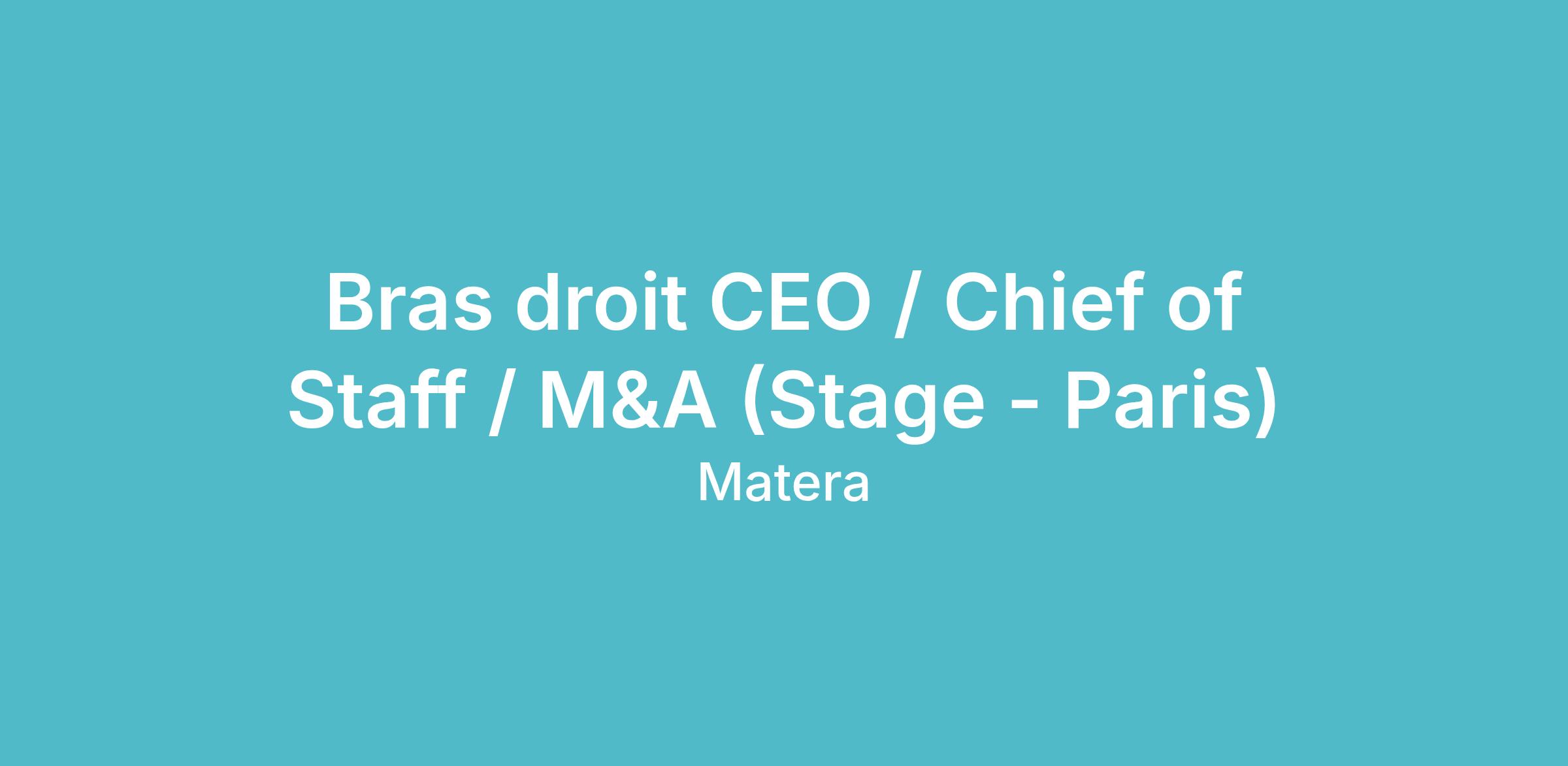 Au sein du CEO Office, tu travailleras directement avec le Chief of Staff et le CEO pour répondre aux besoins clés des équipes et soutenir la croissance de Matera.