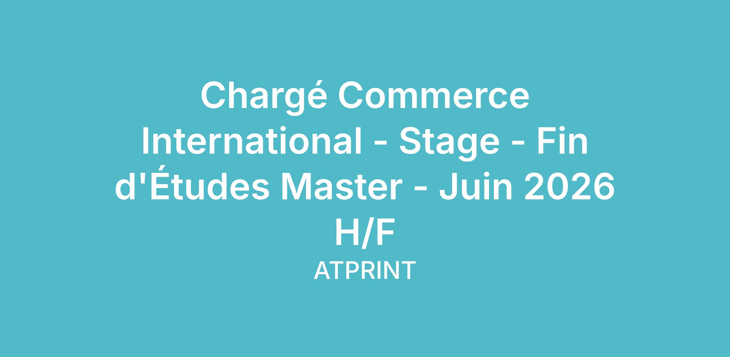 - Stage de fin d'études issu d'un Master de : Ecole de Commerce / Logistique / Ingénieur / Achats / Packaging