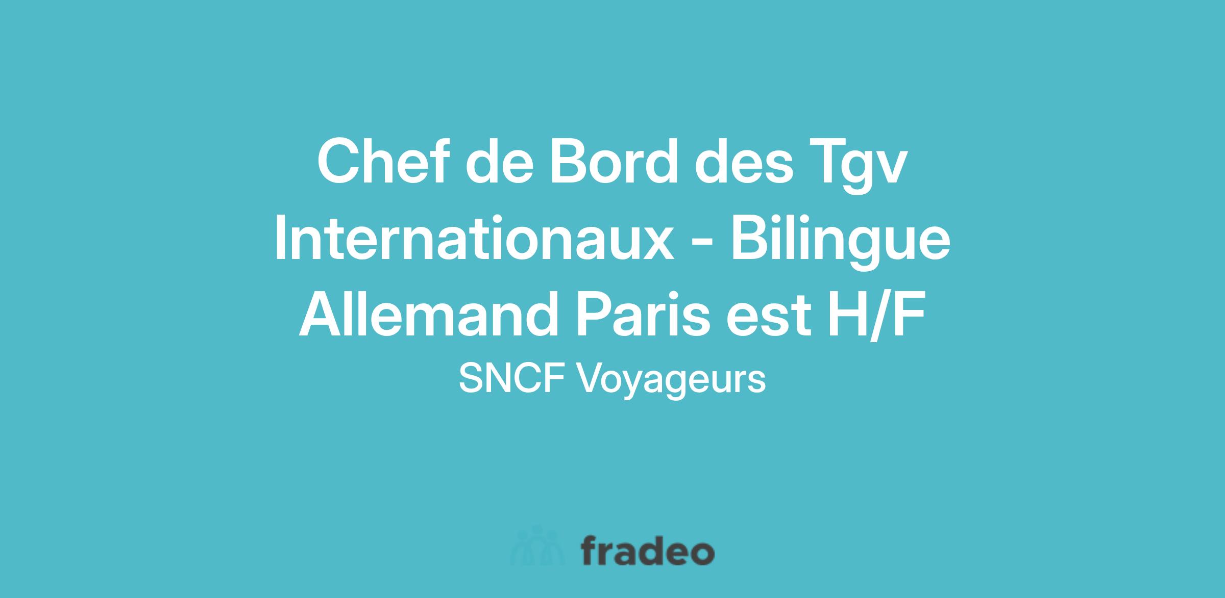 Nous recherchons des candidats avec un niveau B1 en langue allemande car vous évoluerez principalement sur nos TGV qui desservent l'Allemagne.