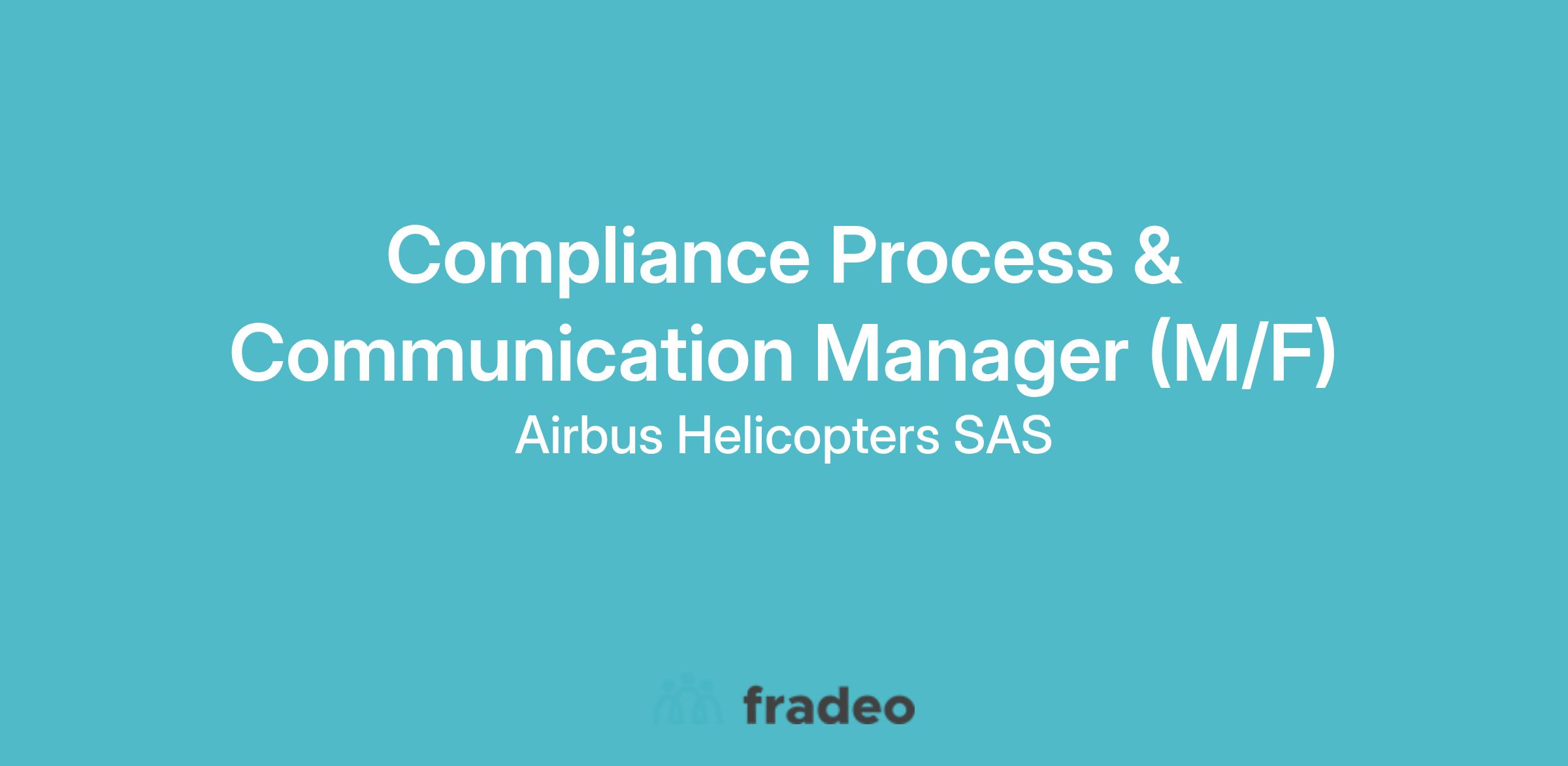 Airbus Helicopters is looking for a Compliance Process & Communication Manager (f/m) to join our team based in Marignane, France.