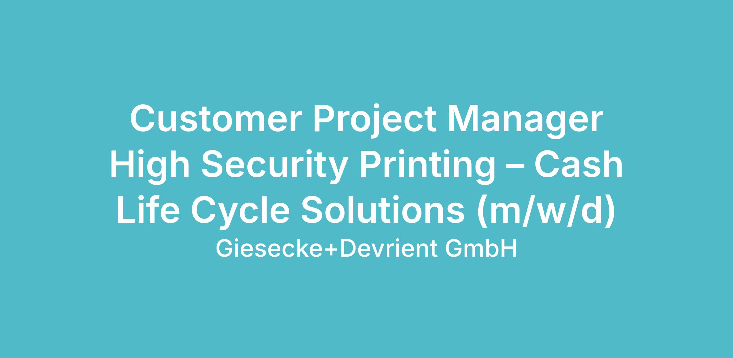 Customer Project Manager High Security Printing – Cash Life Cycle Solutions (m/w/d)