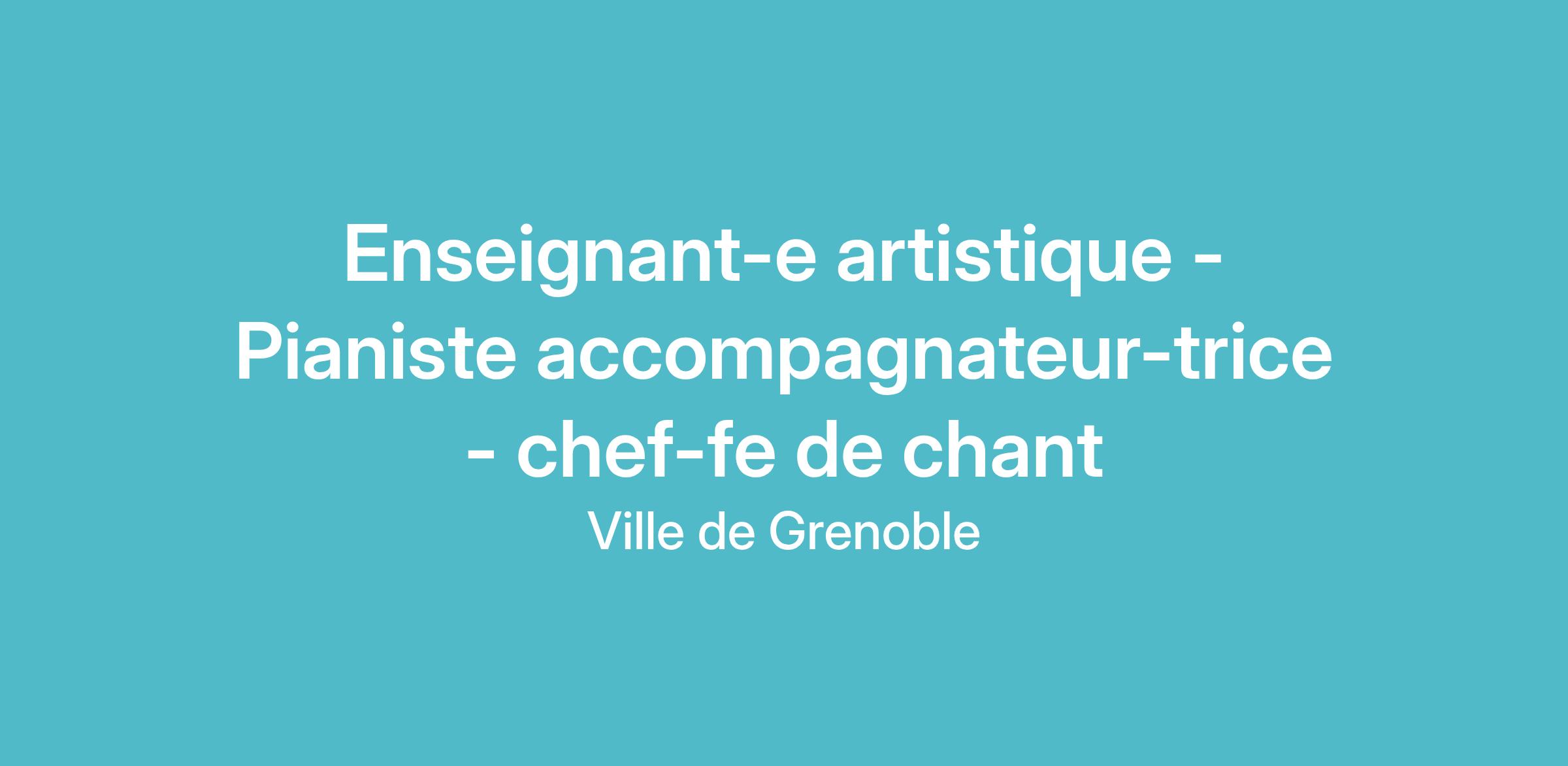 La ville de Grenoble recrute pour son département « Ville Émancipatrice » un-e assistant-e d’enseignement artistique à temps complet, pianiste accompagnateur-trice – chef-fe de chant au sein du Conservatoire à Rayonnement Régional (bâtiment central et annexes) qui regroupe environ 1 800 élèves et près de 120 enseignant-es et 30 agent-es administratif-ves et techniques.