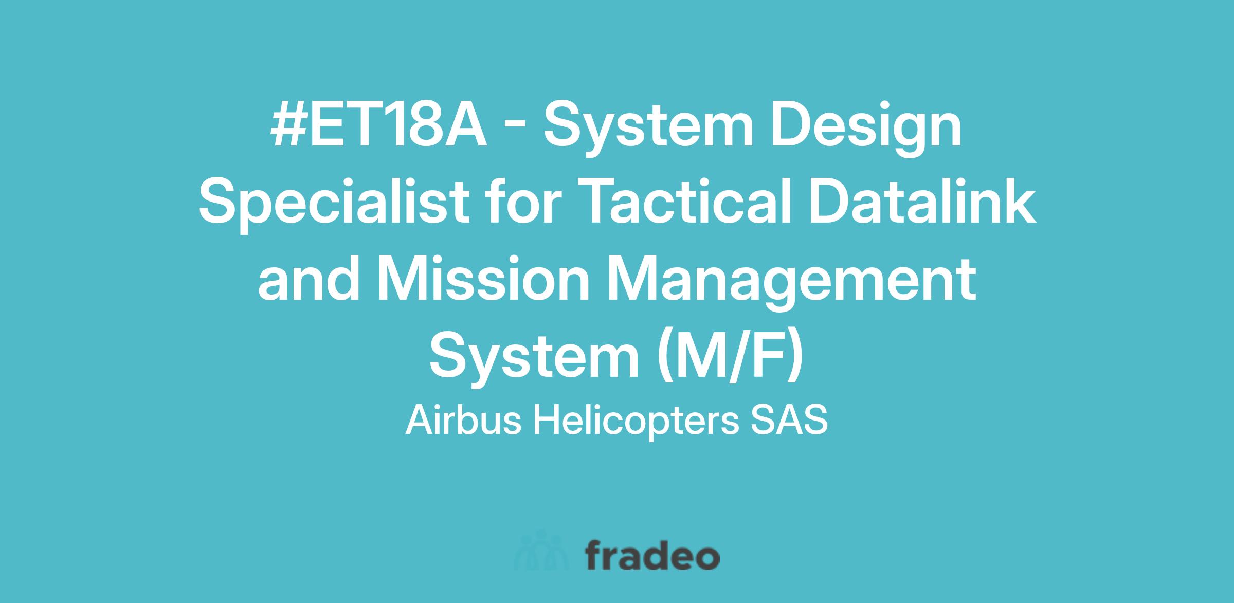 A vacancy for a System Design Specialist in Tactical Datalink and Mission Management Systems has arisen within Airbus Helicopters in Marignane.