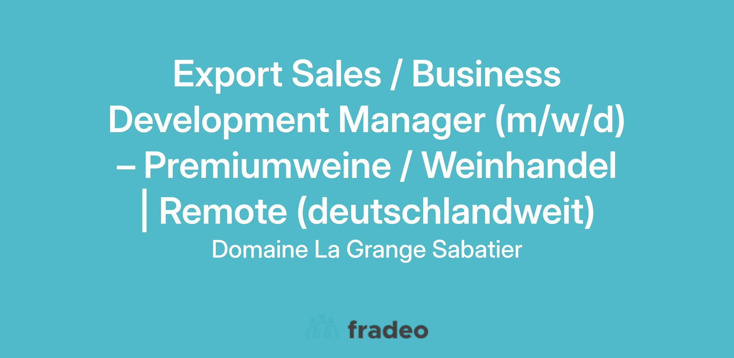 Export Sales / Business Development Manager (m/w/d) – Premiumweine / Weinhandel | Remote (deutschlandweit)