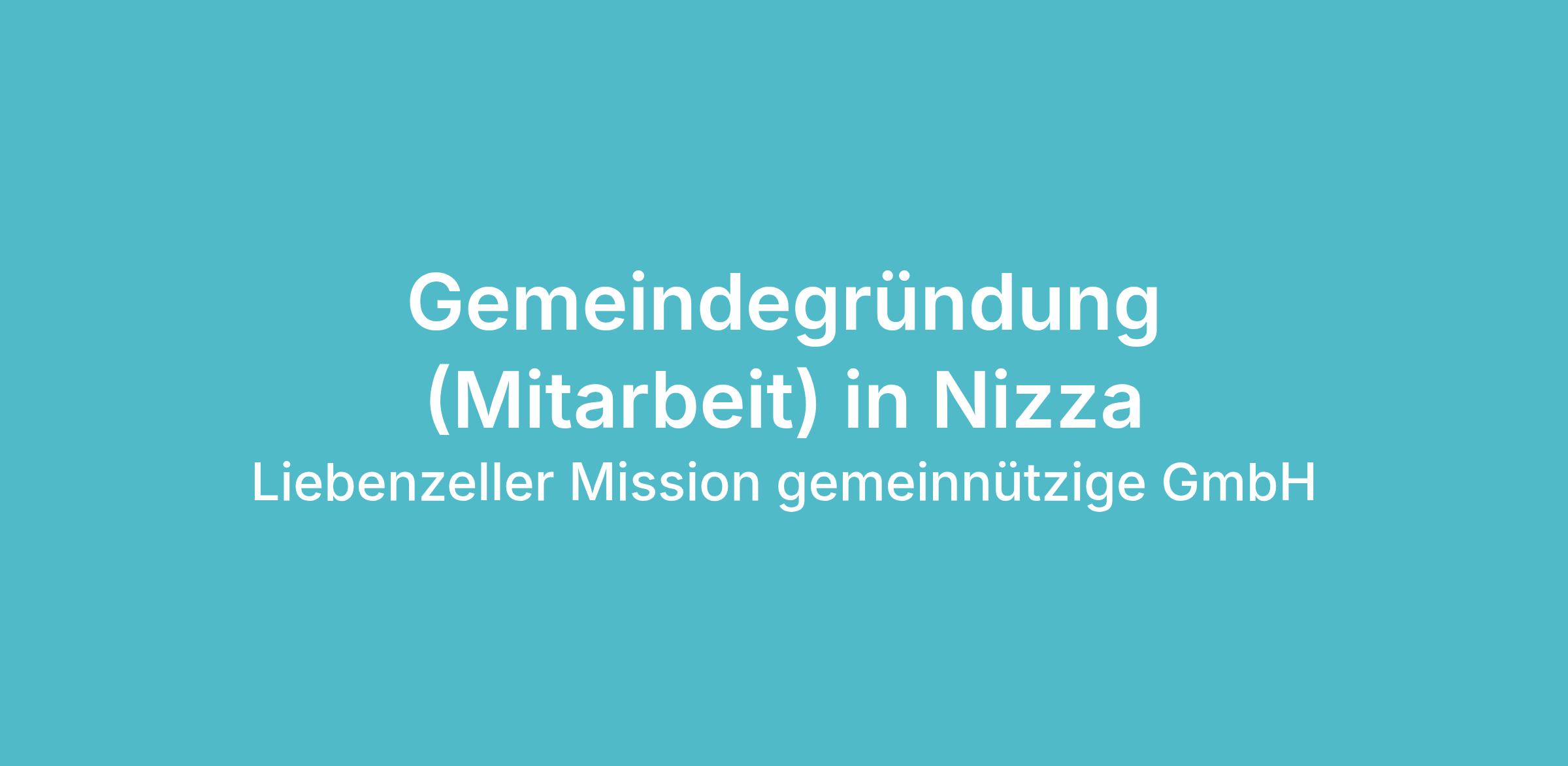Der Gemeindeverband CAEF (Brüdergemeinden www.caef.net) ist Partner der Liebenzeller Mission und sucht Unterstützung für die attraktive Gemeindegründung in Nizza Nord (Saint-André de la Roche) . Gemeinde gründen in der 5. grössten Stadt Frankreichs mit Blick auf das Mittelmeer!