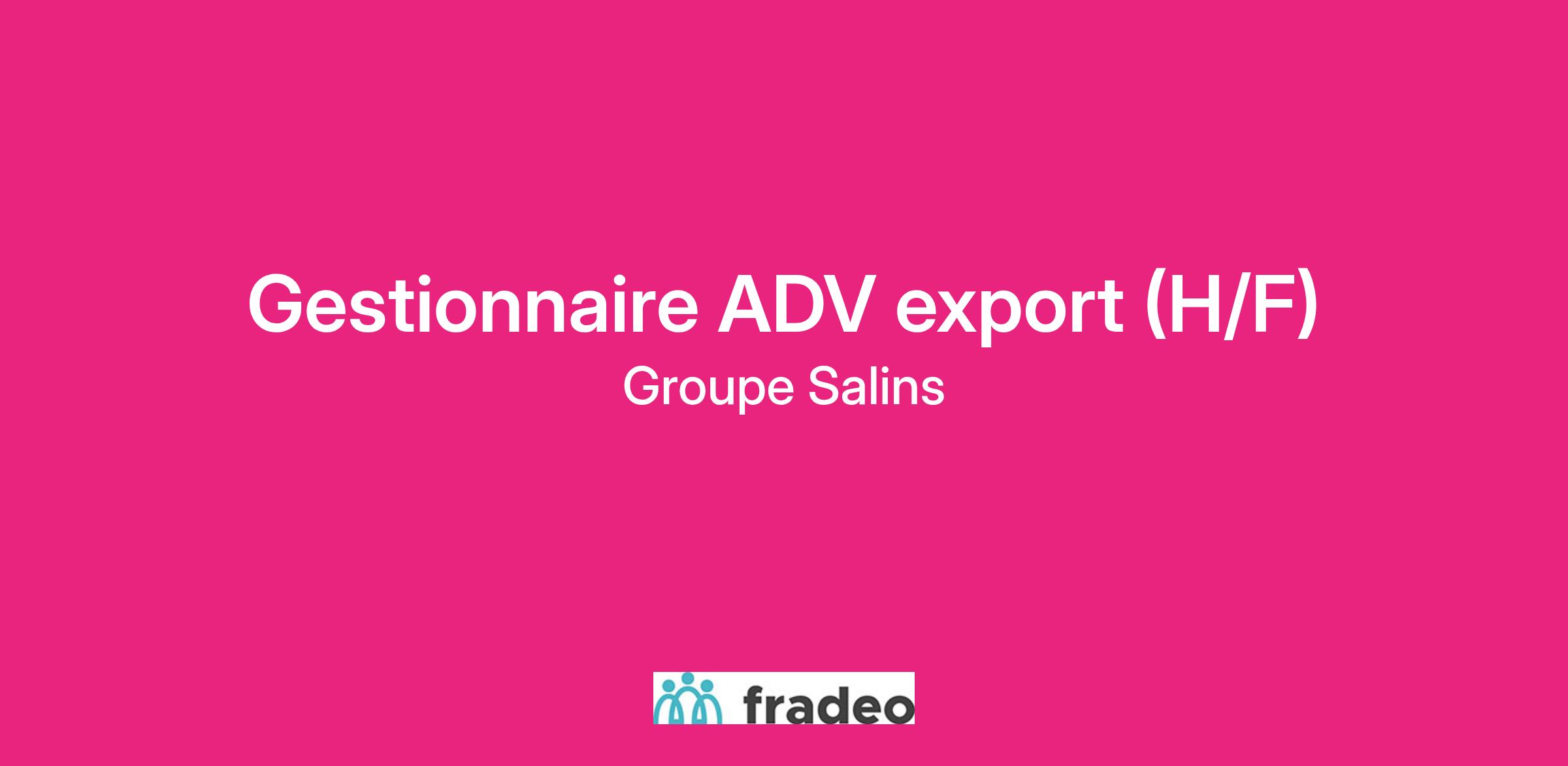 Le groupe Salins recrute un gestionnaire ADV export (H/F) au sein de son service client export. Le poste est à pourvoir dans le cadre d'un CDI, au siège social du groupe à Clichy (92). Vous serez rattaché au directeur du service. Vous serez l'interlocuteur privilégié de nos clients concernant leurs commandes, à ce titre vous aurez donc pour missions :