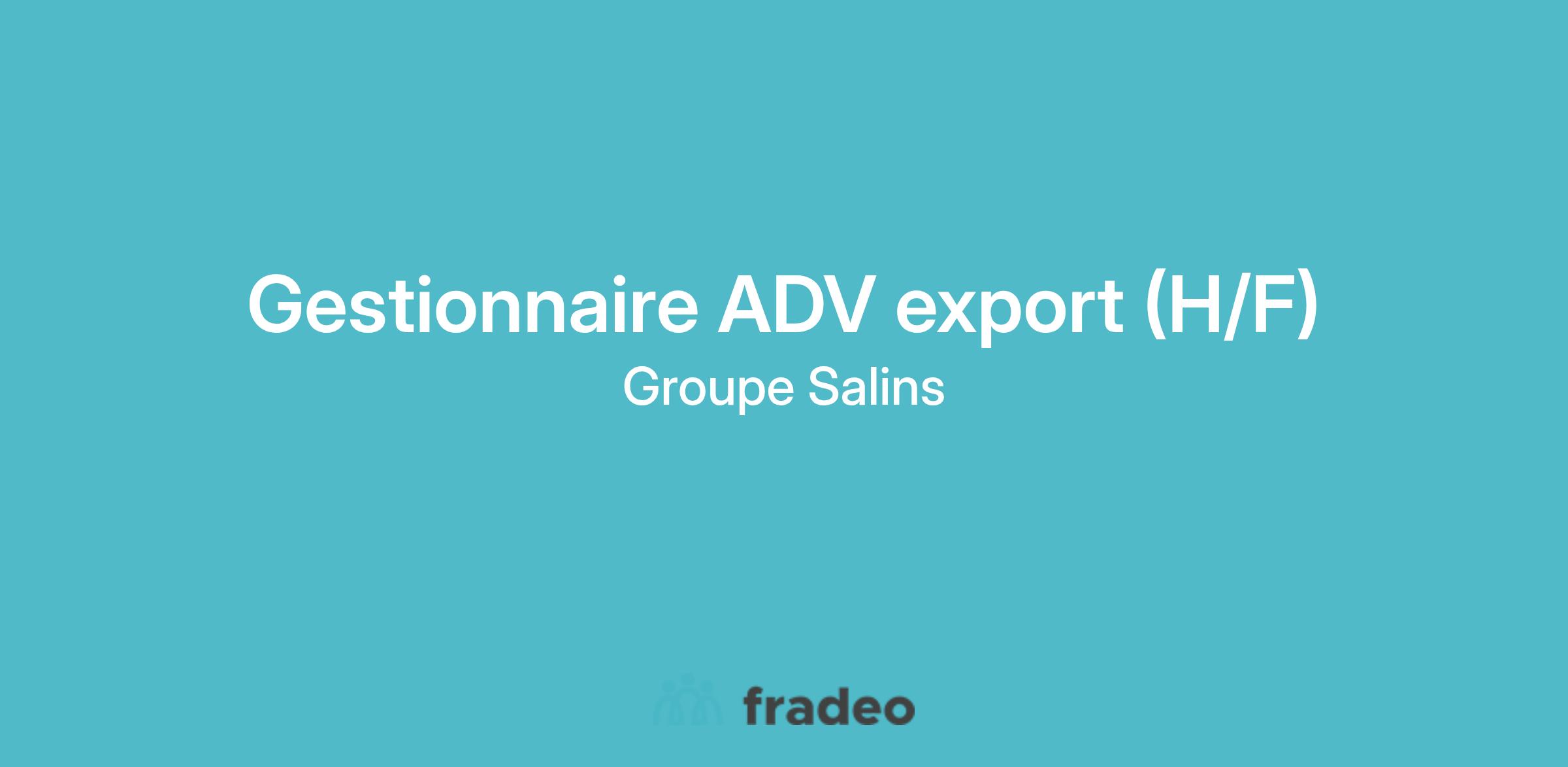 Le groupe Salins recrute un gestionnaire ADV export (H/F) au sein de son service client export. Le poste est à pourvoir dans le cadre d'un CDI, au siège social du groupe à Clichy (92). Vous serez rattaché au directeur du service. Vous serez l'interlocuteur privilégié de nos clients concernant leurs commandes, à ce titre vous aurez donc pour missions :