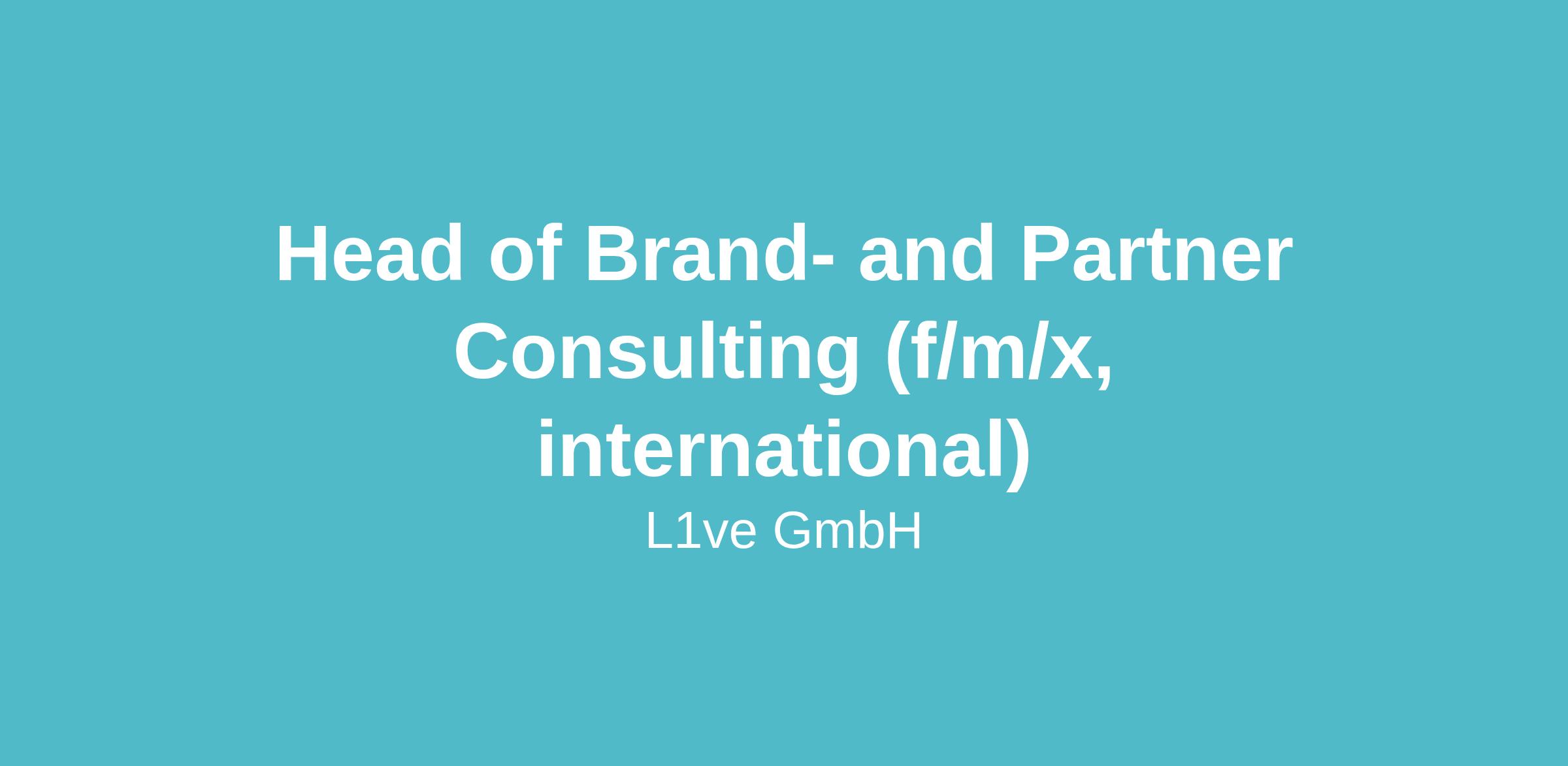 Join our team and, as Head of Brand- and Partner Consulting, shape the future of strategic consulting and partner solutions at L1VE.