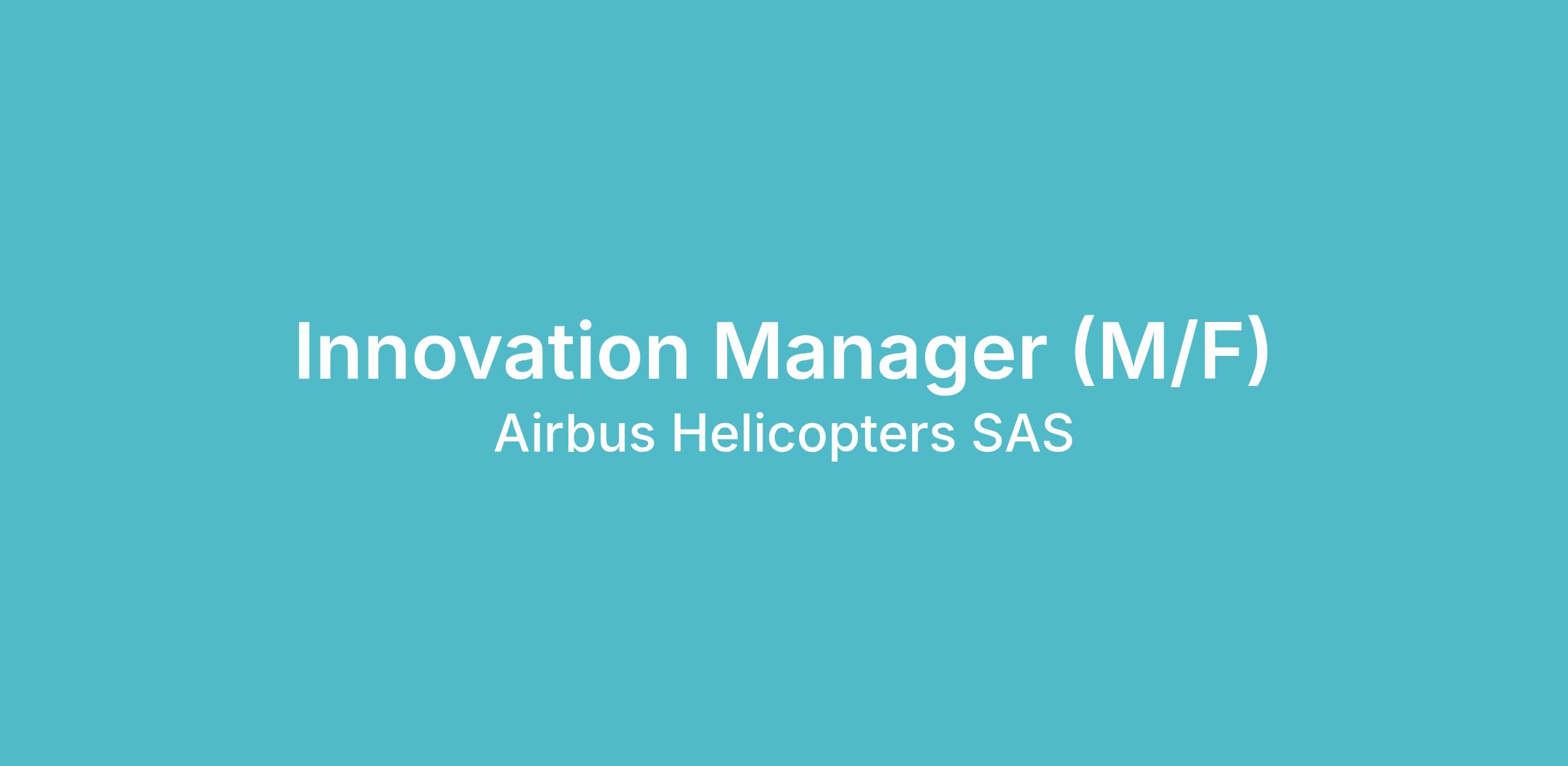 Airbus Helicopters is looking for an Innovation Manager M/F (f/m) to join our team based in Marignane , France.
