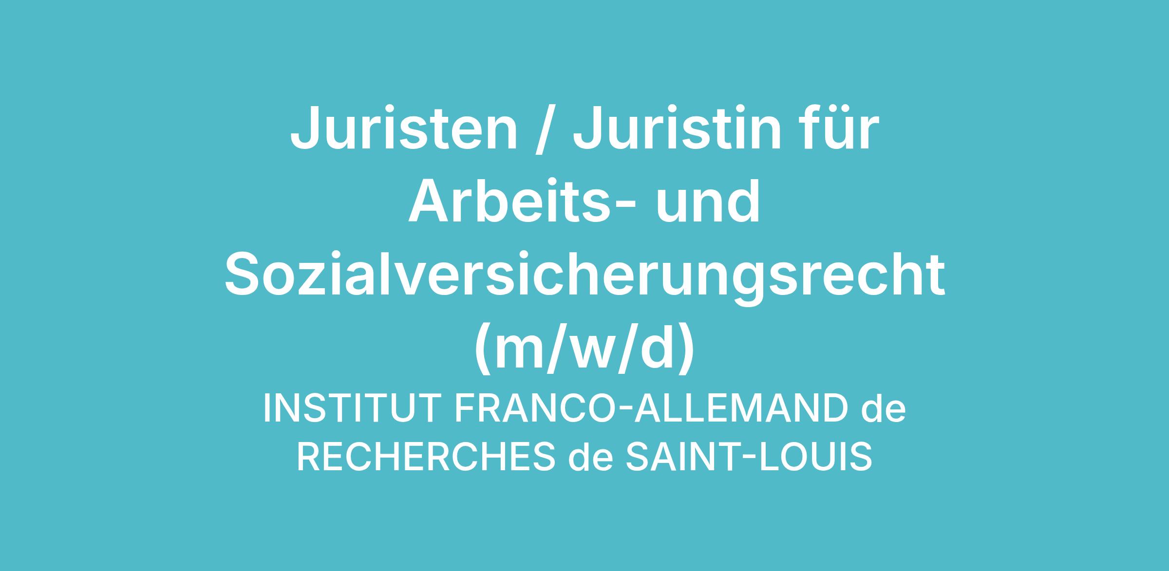 Zur Verstärkung seiner internen juristischen Expertise sucht das ISL eine/-n Juristen / Juristin für Arbeits- und Sozialversicherungsrecht mit sehr guten Französisch- und Deutschkenntnissen (m/w/d).