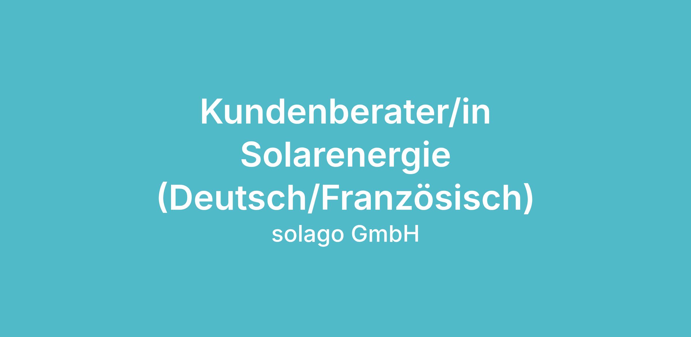 Kundenberater/in Solarenergie (Deutsch/Französisch)