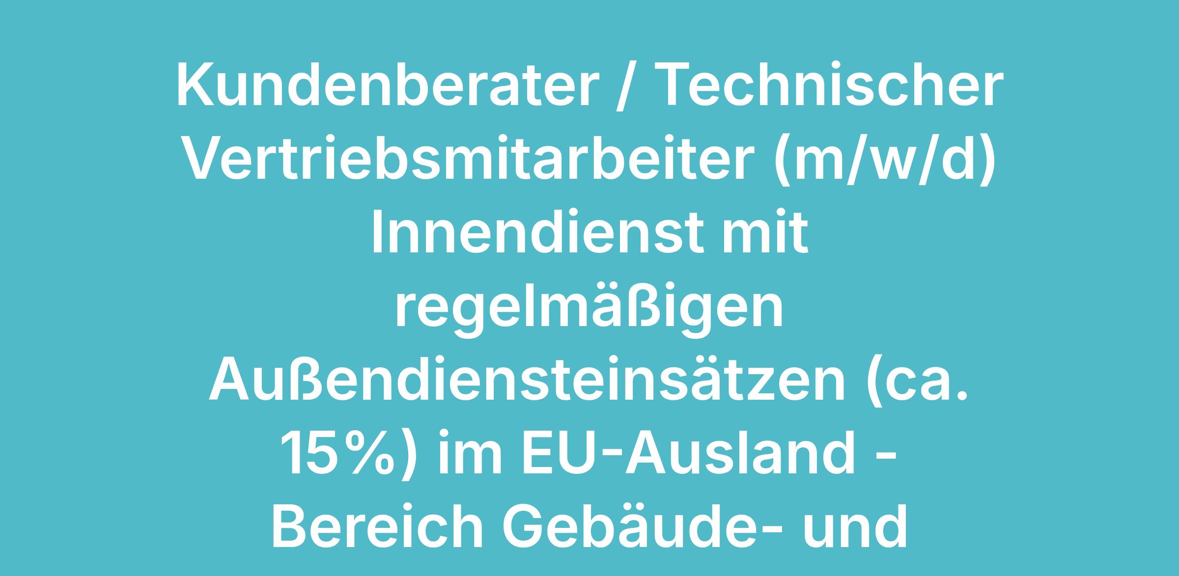 Kundenberater / Technischer Vertriebsmitarbeiter (m/w/d) Innendienst mit regelmäßigen Außendiensteinsätzen (ca. 15%) im EU-Ausland - Bereich Gebäude- und Versorgungstechnik