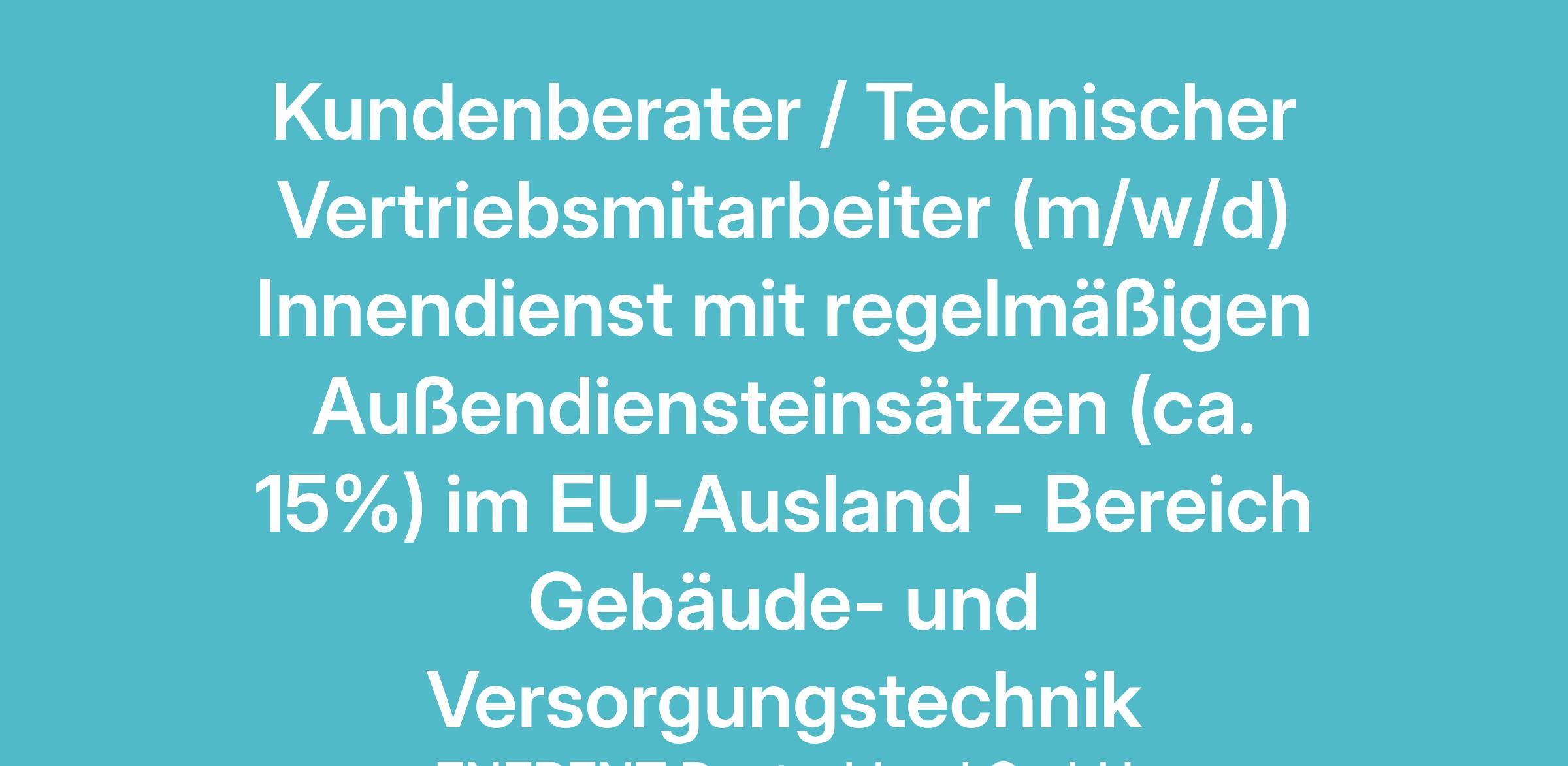 Kundenberater / Technischer Vertriebsmitarbeiter (m/w/d) Innendienst mit regelmäßigen Außendiensteinsätzen (ca. 15%) im EU-Ausland - Bereich Gebäude- und Versorgungstechnik