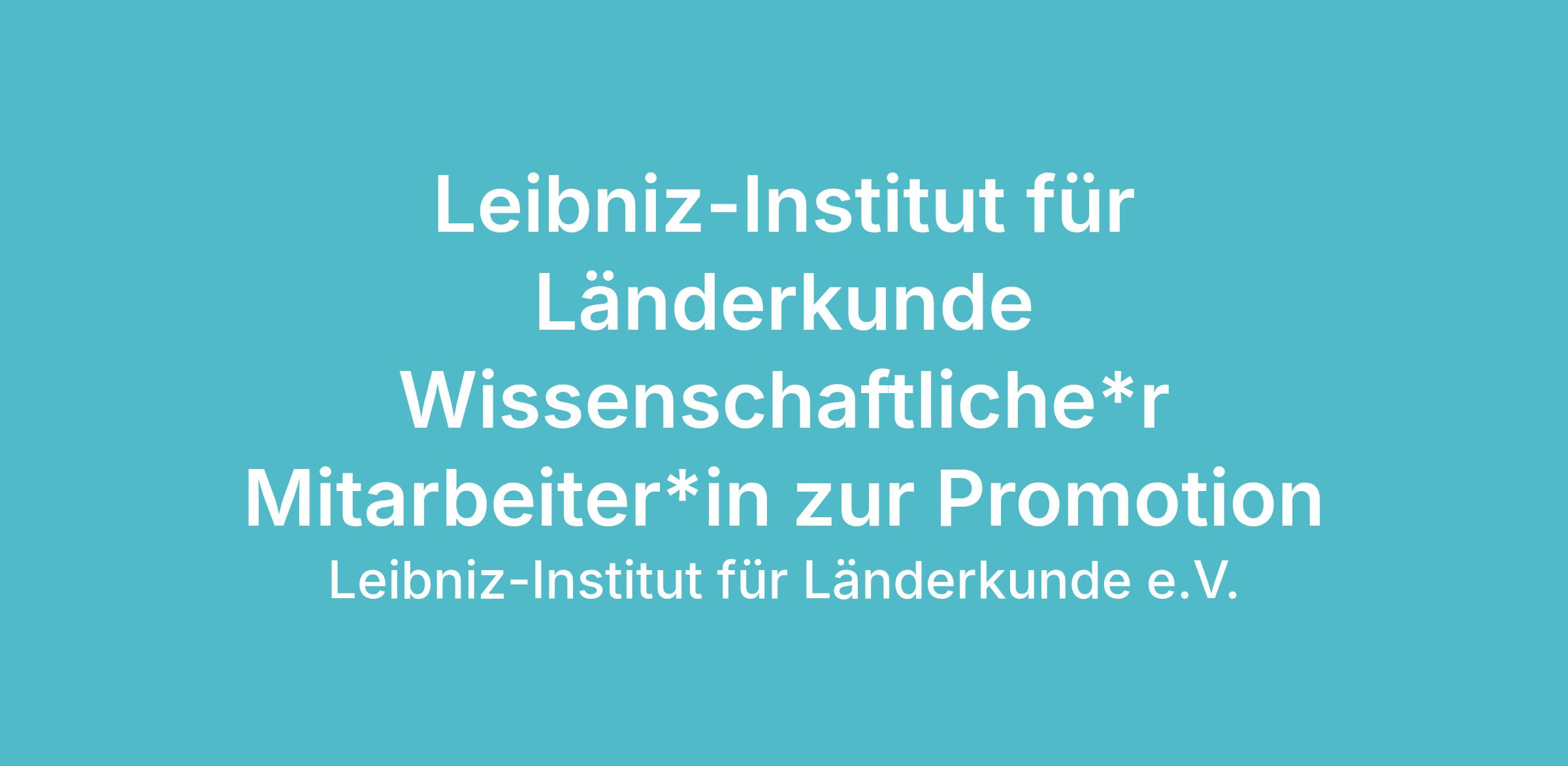 Das Leibniz-Institut für Länderkunde (IfL) in Leipzig bietet zum nächstmöglichen Zeitpunkt für eine Laufzeit von 36 Monaten die Stelle als