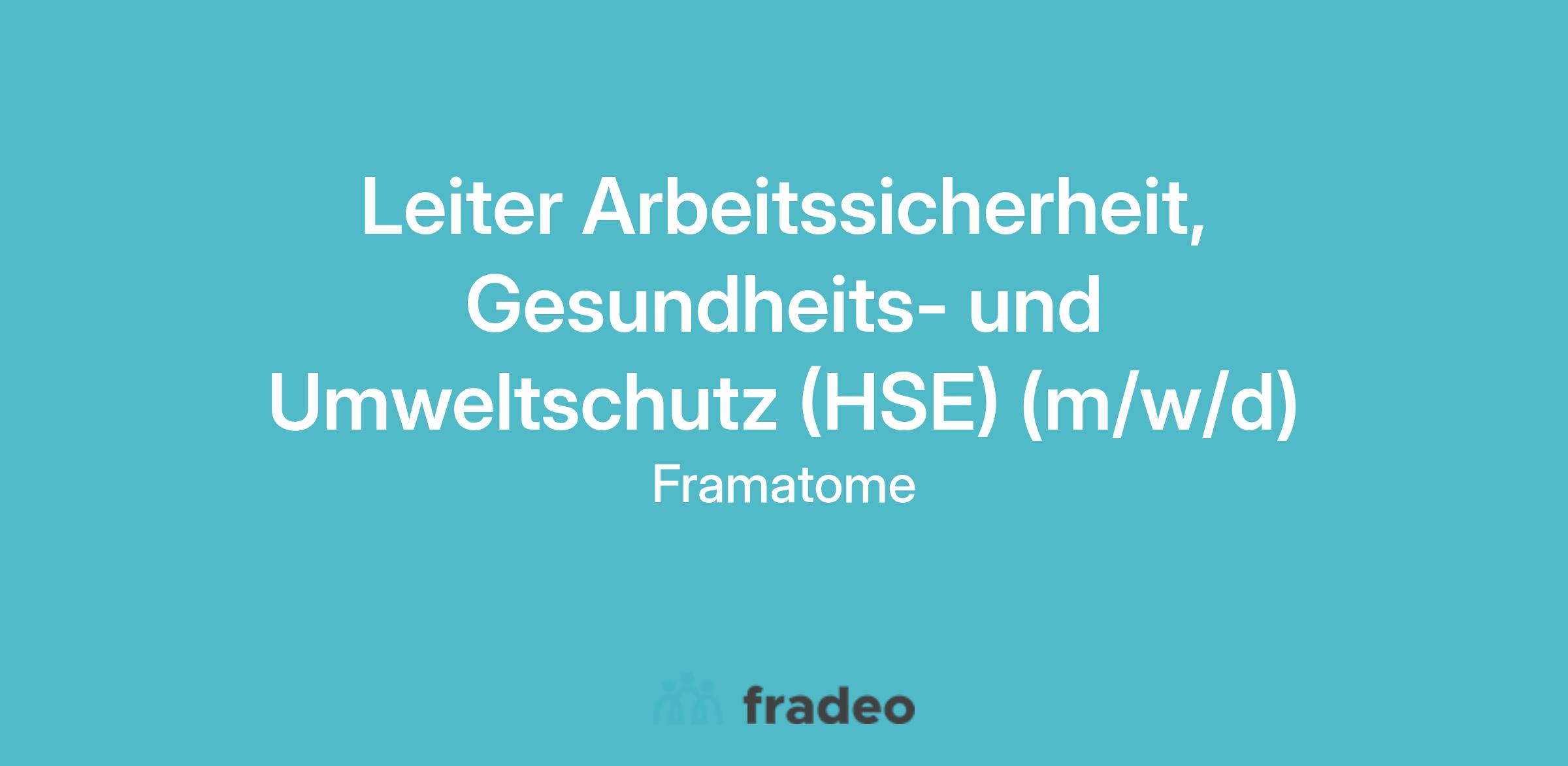 - Verantwortung für die Umsetzung der HSE-Strategie gemäß den Framatome-Grundsätzen