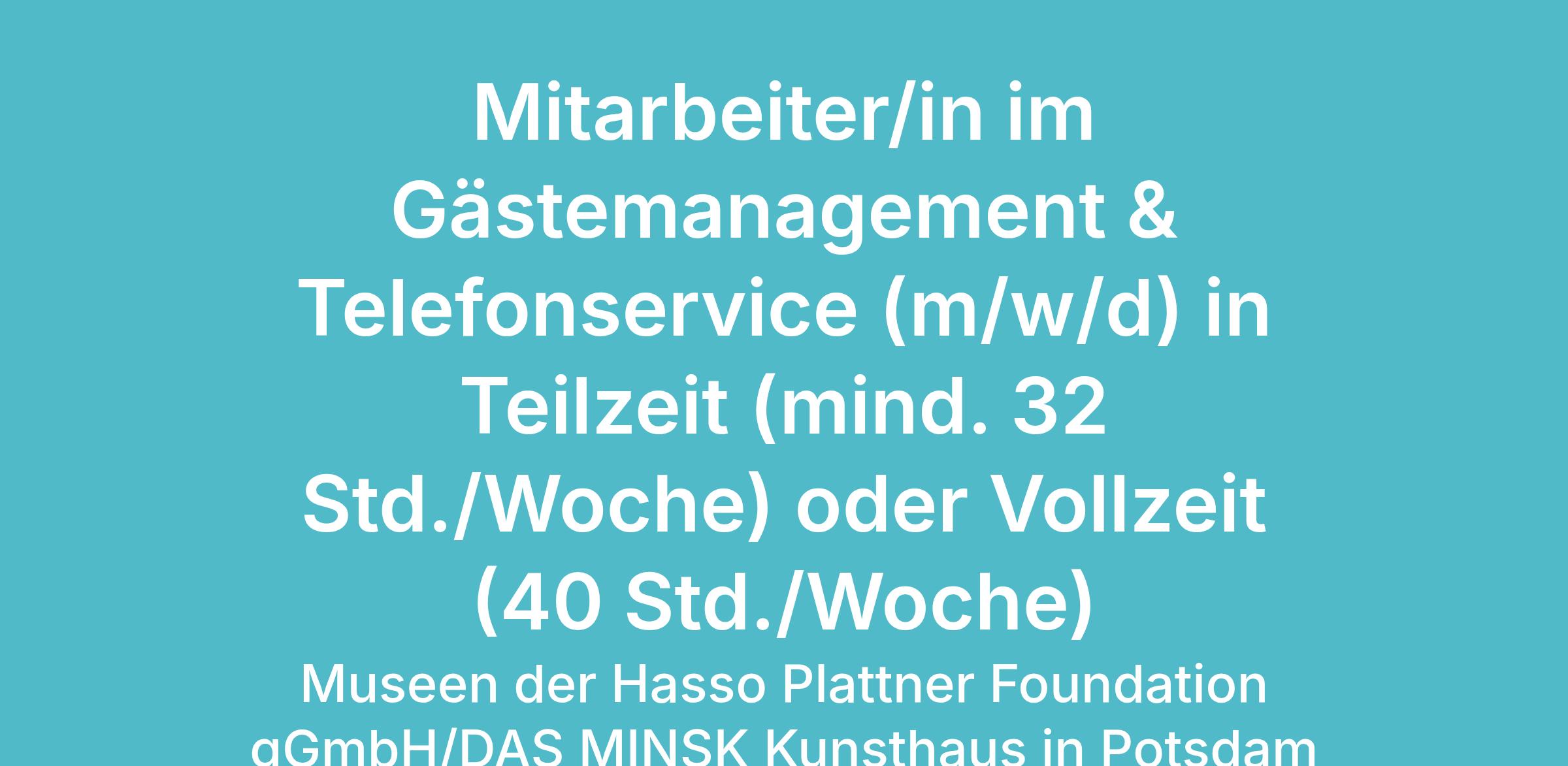 Die Museen der Hasso Plattner Foundation gGmbH sucht zum nächstmöglichen Zeitpunkt: