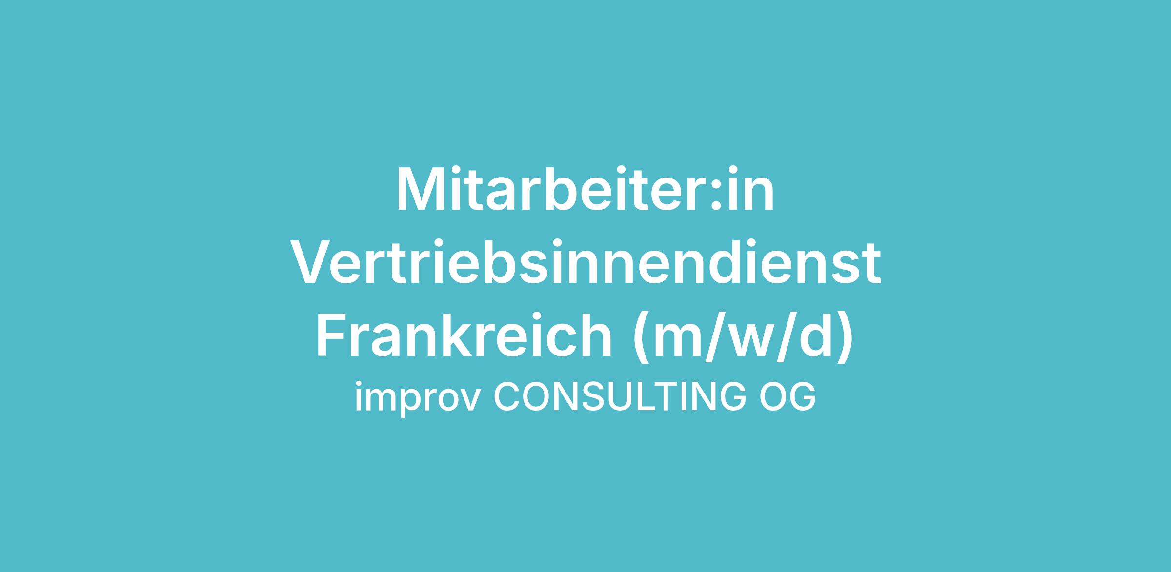 Unser Auftraggeber ist ein international erfolgreiches Produktionsunternehmen mit Sitz im Raum Salzburg. Mit hochwertigen Produkten und modernsten Fertigungstechnologien zählt das Unternehmen zu den führenden Anbietern seiner Branche und beliefert namhafte Kunden in ganz Europa. Zur Verstärkung des Vertriebsteams wird eine engagierte Persönlichkeit für den Vertriebsinnendienst mit Schwerpunkt Frankreich gesucht.