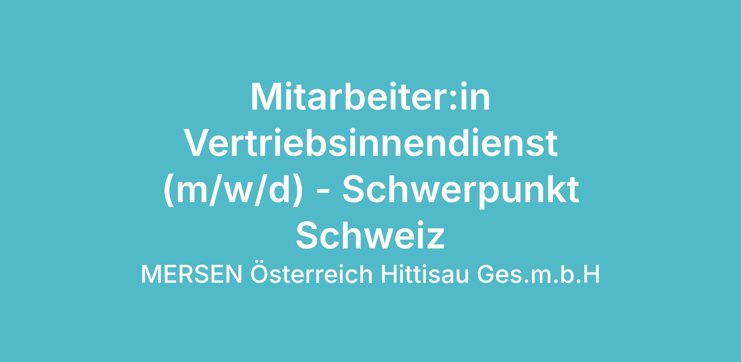 Mitarbeiter:in Vertriebsinnendienst (m/w/d) - Schwerpunkt Schweiz