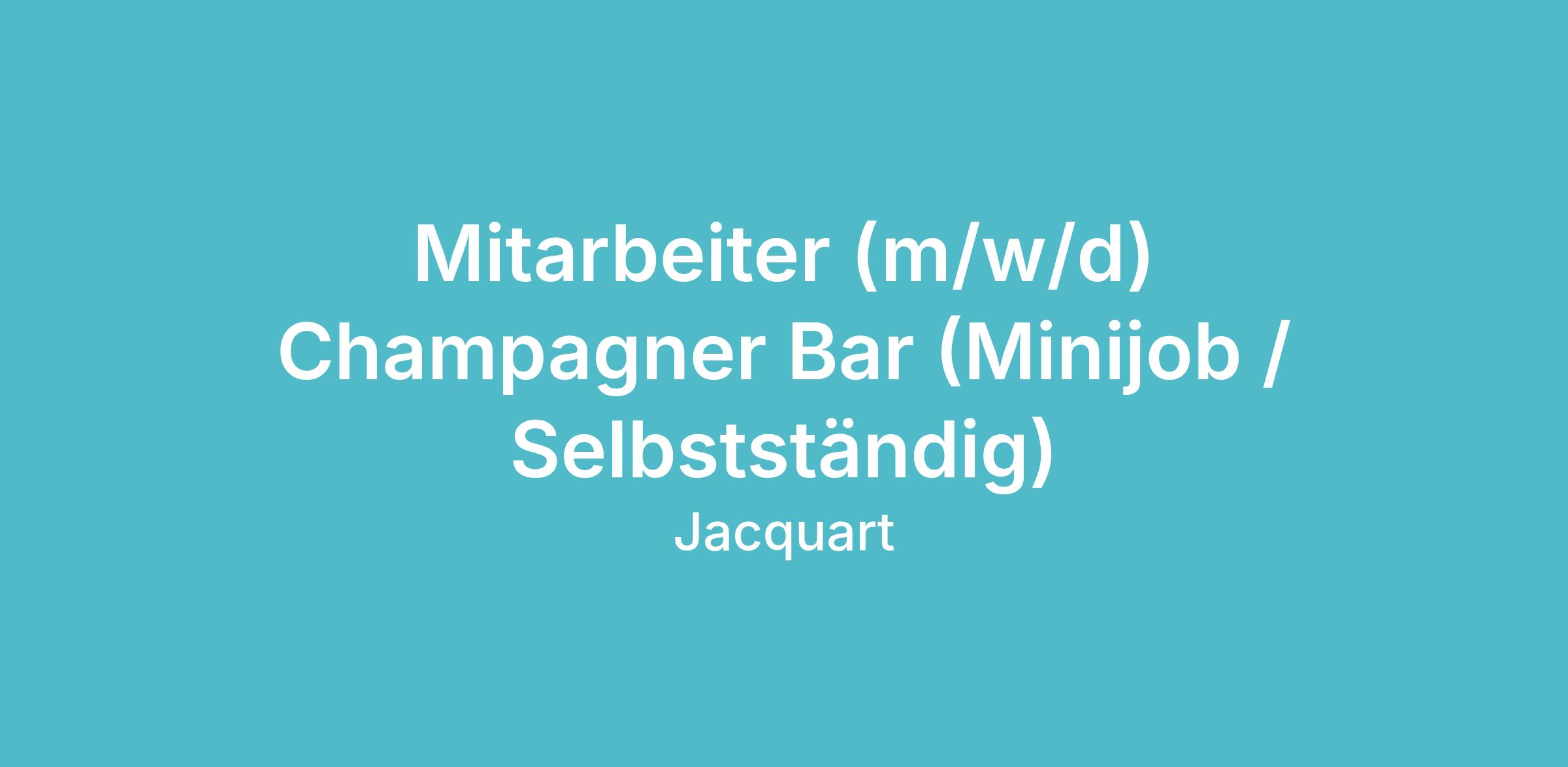Für unsere Champagne Jacquart Bar in der Galeria Kaufhof Dortmund suchen wir ab sofort eine oder zwei engagierte Mitarbeiter (m/w/d) auf Minijob-Basis oder selbstständiger Basis zur Unterstützung unseres Teams.