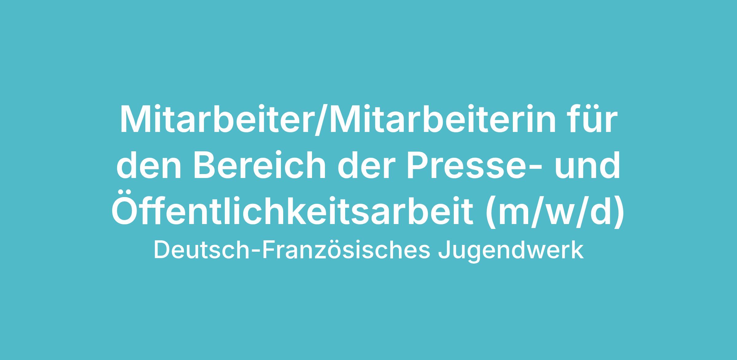 Zum 1. April 2026 (oder nach Vereinbarung) suchen wir im Rahmen einer Mutterschutz- und Elternzeitvertretung (CDD befristet auf ca.1 Jahr) einen Mitarbeiter/eine Mitarbeiterin für den Bereich der Presse- und Öffentlichkeitsarbeit (m/w/d)