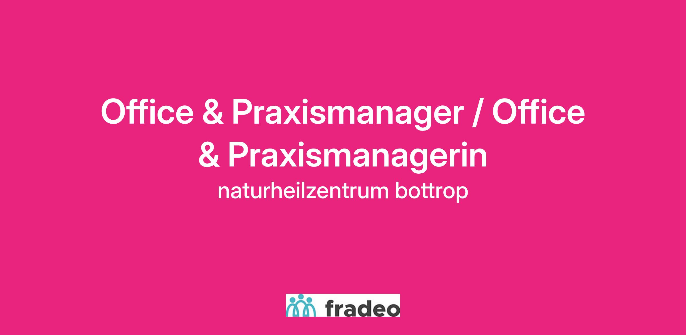 Im Naturheilzentrum Bottrop setzen interdisziplinäre Spezialisten aus verschiedenen Bereichen der Naturheilkunde ihre Erfahrung zur Genesung von Patienten aus aller Welt ein. Die Ergebnisse sind richtungsweisend, die Erfolge schaffen Vertrauen. Eines der aktuellen Jobangebote ist eine Vollzeitstelle 38,5 Std. Als Office & Praxismanager / Office & Praxismanagerin entsprechend dem Berufsbild in Festanstellung zum nächstmöglich Termin.