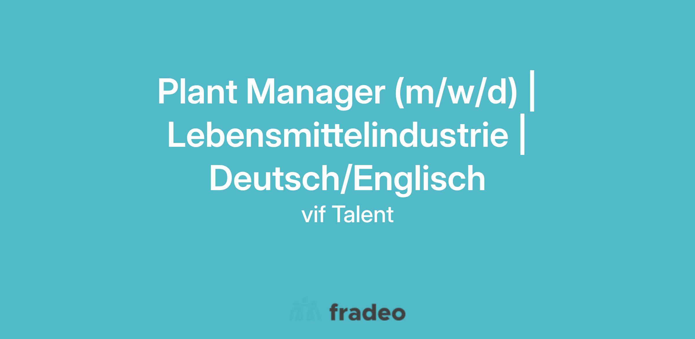 Plant Manager (m/w/d) | Lebensmittel- & FMCG-Industrie | Deutsch/Englisch | Großraum Düsseldorf