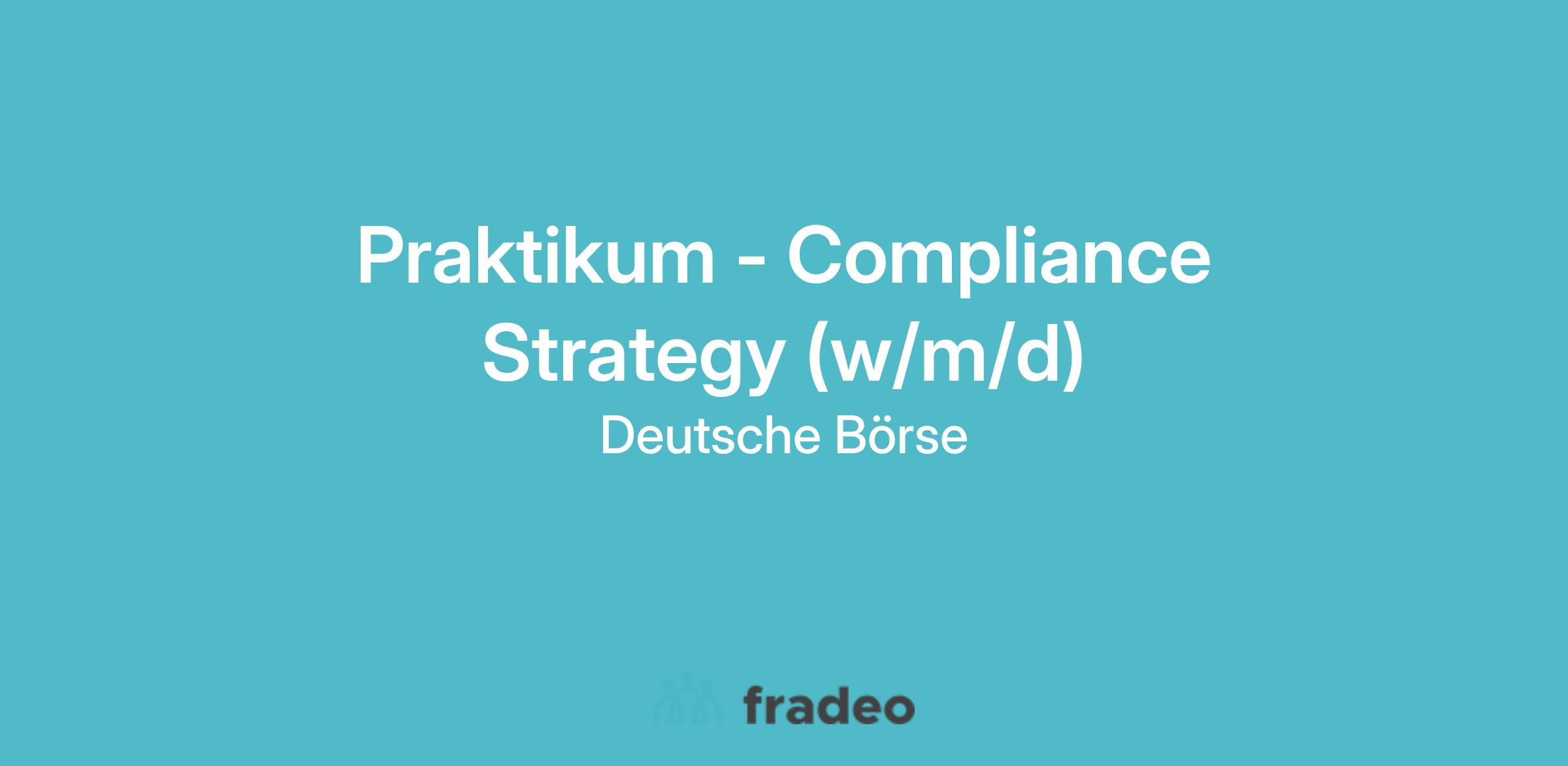 Als Praktikant*in im Bereich Group Compliance bietet sich dir die herausragende Möglichkeit zur Orientierung bei der Berufswahl im Rahmen einer anspruchsvollen Praktikumstätigkeit, welche dir Einblicke in die Praxis und die Dynamik des Kapitalmarktes sowie wertvolle Erfahrungen in einem innovativen Unternehmen bietet. Die Hauptaufgabe der Abteilung ist die Überwachung des gesamten Compliance-Risiko Profils der Gruppe Deutsche Börse und aller Geschäftsbereiche. Entwicklungen, die die Interessen der Gruppe Deutsche Börse gefährden könnten, werden so identifiziert und geeignete Gegenmaßnahmen ergriffen. Werde ein aktiver Teil dieses Prozesses - wir bieten dir abwechslungsreiche, interessante und natürlich herausfordernde Aufgabenstellungen mit kollegialer Unterstützung!