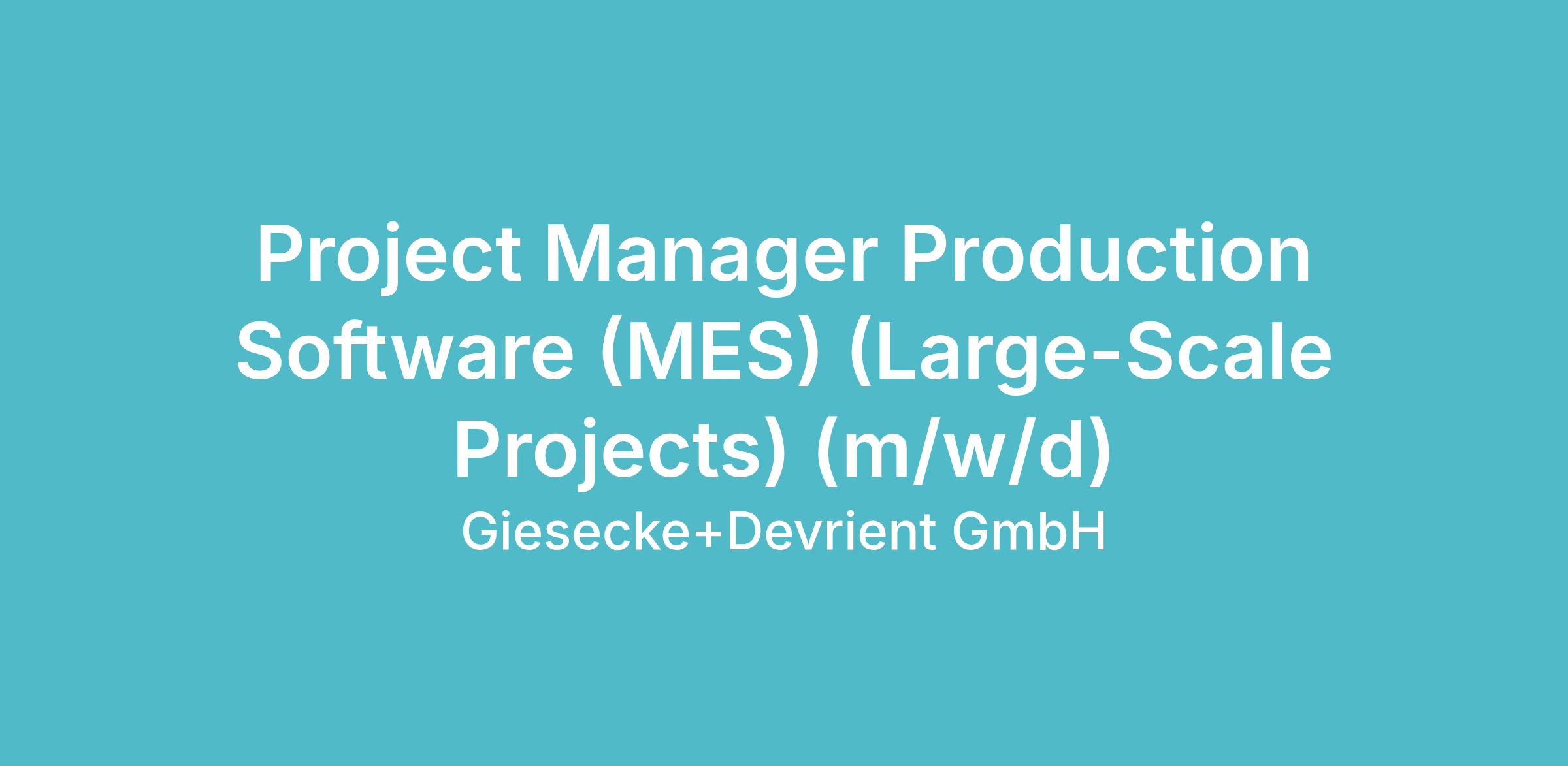 Project Manager Production Software (MES) (Large-Scale Projects) (m/w/d)