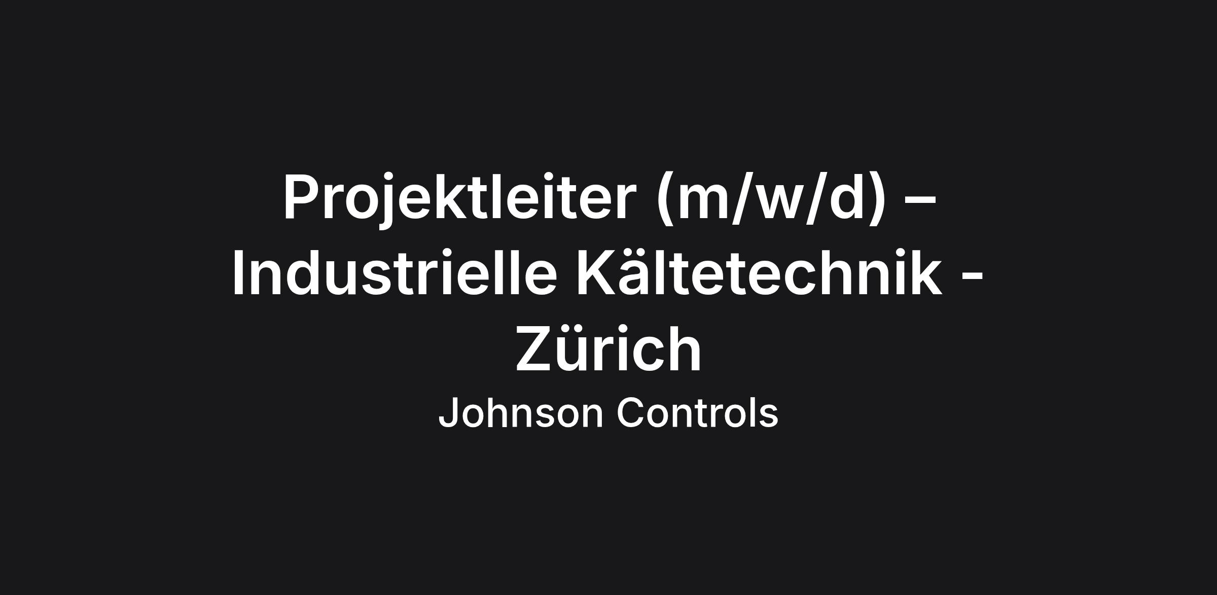 Projektleiter (m/w/d) – Industrielle Kältetechnik - Zürich