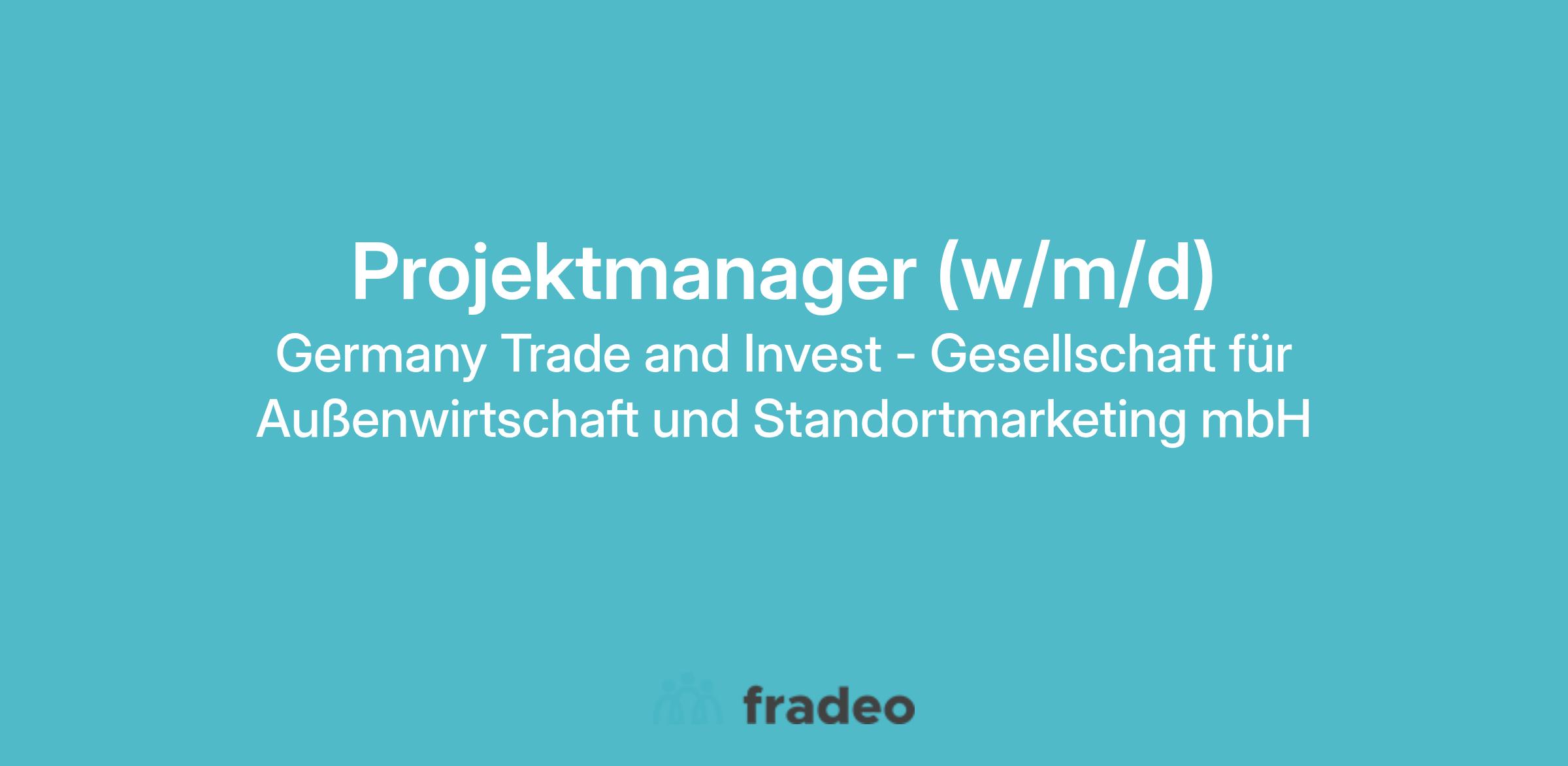 Wir sind Germany Trade & Invest (GTAI) – die Außenwirtschaftsagentur der Bundesrepublik Deutschland. Wir informieren den deutschen Mittelstand über Chancen und Risiken in Auslandsmärkten und beraten ausländische Unternehmen bei der Ansiedlung in Deutschland. Darüber hinaus werben wir für die Standortvorteile Deutschlands im Ausland und unterstützen die Internationalisierung der Wirtschaft in den neuen Bundesländern sowie vom Strukturwandel betroffenen Regionen. Sie suchen eine neue berufliche Herausforderung? Bei uns haben Sie die Möglichkeit, unsere Teams im Bereich der Außenwirtschaftsförderung in einem internationalen Rahmen zu unterstützen. Ob Exportförderung, Investorenanwerbung oder Standortmarketing: Fördern Sie gemeinsam mit uns den Wirtschaftsstandort Deutschland und setzen sich mit uns für die Schaffung und Erhaltung von Arbeitsplätzen ein. Für die Geschäftsstelle Wirtschaftsnetzwerk Afrika an unserem Bonner Standort oder Berliner Standort suchen wir ab sofort im Rahmen eines bis zum 31.12.2027 befristeten Arbeitsverhältnisses einen Projektmanager (w/m/d) in Vollzeit mit 39 Stunden.
