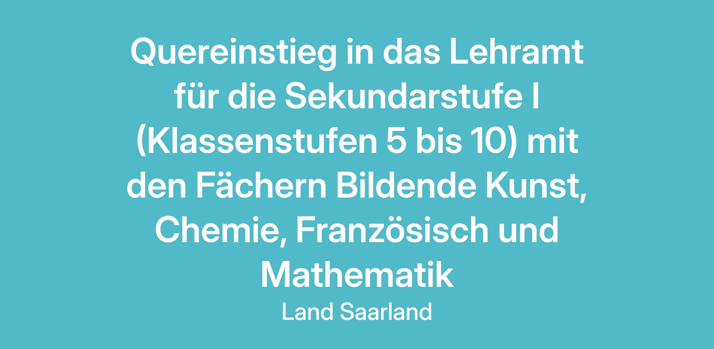 Quereinstieg in das Lehramt für die Sekundarstufe I (Klassenstufen 5 bis 10) mit den Fächern Bildende Kunst, Chemie, Französisch und Mathematik