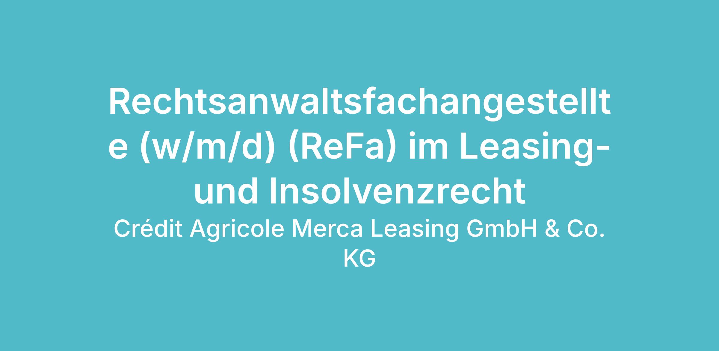Crédit Agricole Merca Leasing ist seit über 30 Jahren ein führendes mittelständisches Finanzdienstleistungsunternehmen der Leasingbranche und seit 2025 Bestandteil der internationalen französische Großbank Crédit Agricole. Bei Crédit Agricole Merca Leasing vereinen wir Eigenständigkeit mit Flexibilität, Erfahrung, Lösungsorientierung, Kreativität und Umsetzungsstärke. Unsere Mitarbeiterinnen und Mitarbeiter spiegeln diese Werte wider und sind der Schlüssel zu unserem kontinuierlichen Erfolg.