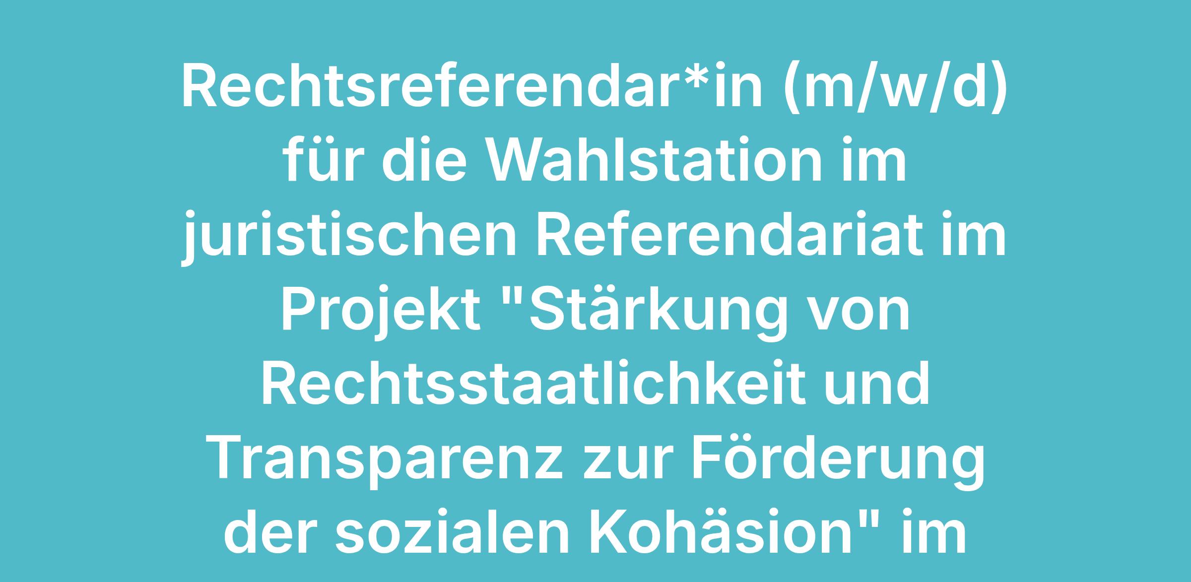 Bitte senden Sie Ihr Bewerbungsschreiben und Ihren Lebenslauf per E-Mail an Frau Steinmann (jutta.steinmann@giz.de) und geben dabei Ihren präferierten Einsatzzeitraum für die Wahlstation an (Hinweis: die Wahlstation ist kein Praktikum, sondern richtet sich ausschließlich an Rechtsreferendare (m/w/d) im Sinne der jeweiligen Juristenausbildungsgesetze der Bundesländer. Wir freuen uns auf Ihre Nachricht.