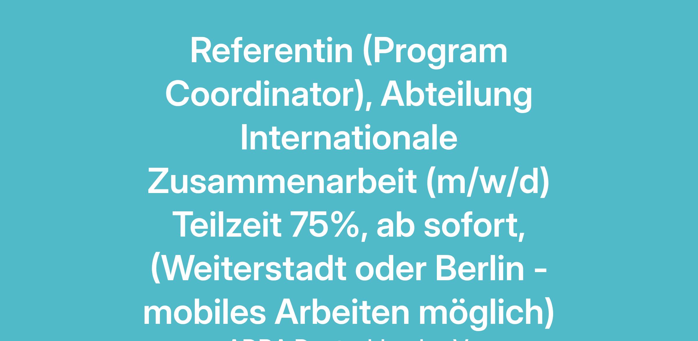 Referent:in (Program Coordinator) Abteilung Internationale Zusammenarbeit (m/w/d)