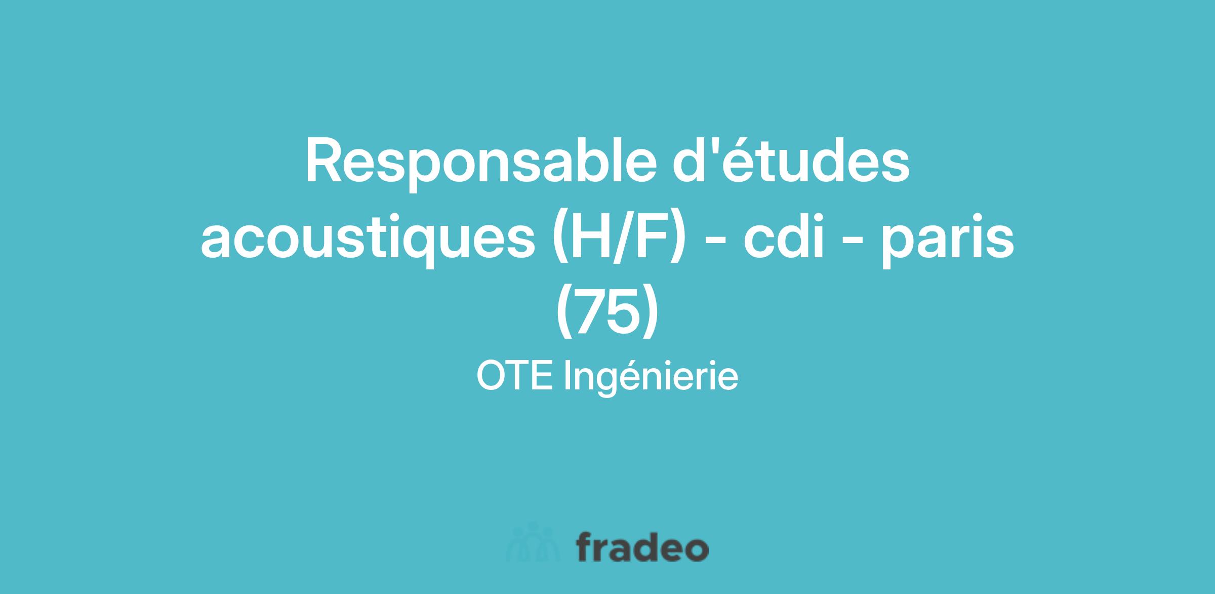 Pour poursuivre notre développement, dans le cadre d'une création de poste, nous recherchons un.e Responsable d'Etudes Acoustiques au sein de notre agence de Paris.