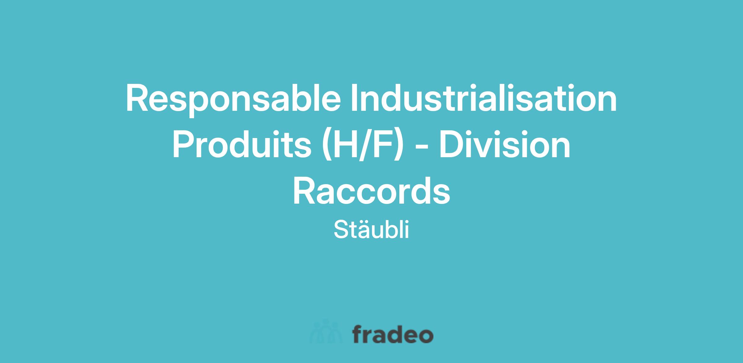 Dans le cadre d’un remplacement dans le service Industrialisation Raccords, nous recherchons un Responsable du secteur Industrialisation Produits, spécialisé dans les techniques d’assemblages grande série.