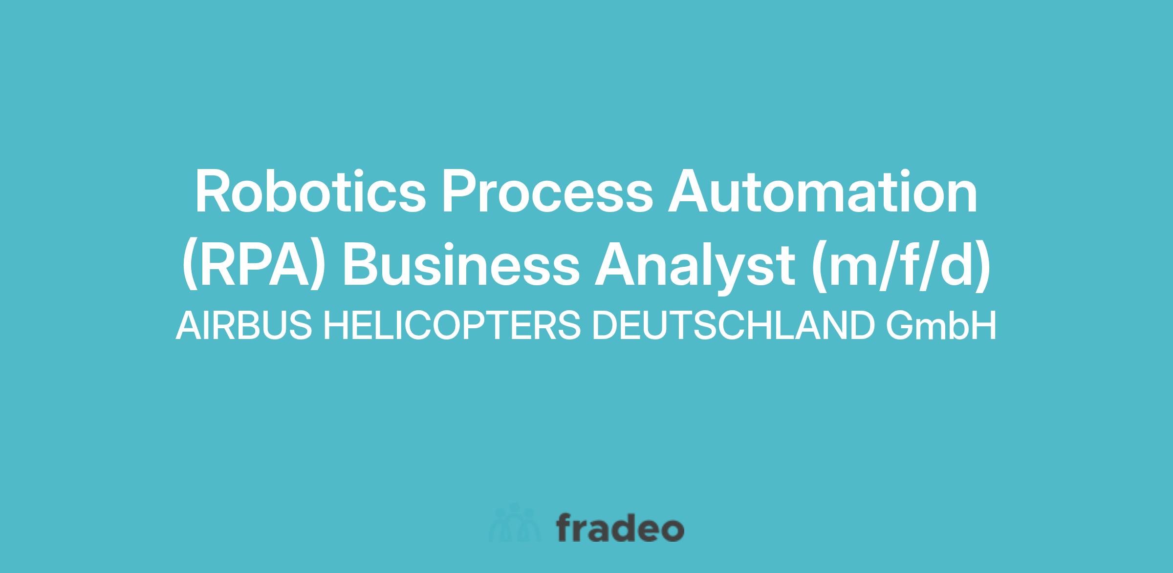 In order to manage current and future projects, Airbus Helicopters is looking for you to join the team PSL IM Integration & Digital Technologies in Donauwörth as soon as possible as our new Robotics Process Automation (RPA) Business Analyst (d/f/m)