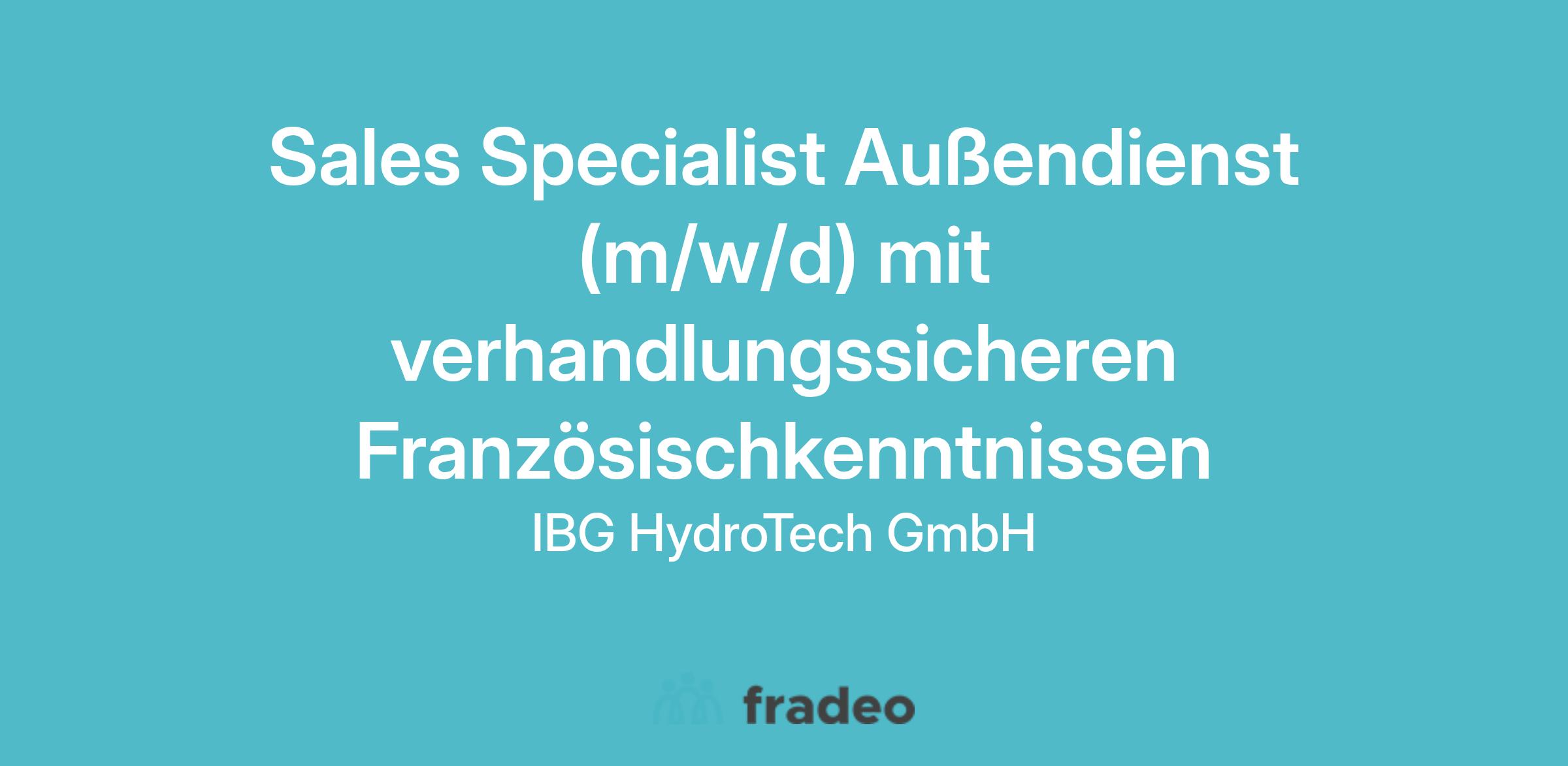 Wir, die IBG HydroTech GmbH mit Sitz in Alzenau/Bayern, sind auf die Entwicklung und Herstellung hochwertiger Produkte im Bereich Robotik, Rohrreinigung und grabenlose Rohrsanierung spezialisiert. Angefangen von einzelnen Systemkomponenten bis hin zu komplexen Fahrzeugausbauten fertigen wir fast ausschließlich nach Kundenwunsch. Unsere Produkte unterliegen einem kontinuierlichen Verbesserungsprozess, wobei wir durch einen laufenden Dialog mit unseren Kunden und Anwendern zusätzlich die Produkteigenschaften ergänzen. Dieser Dialog ermöglicht es, stets anspruchsvolle Produkte anzubieten. Derzeit beschäftigen wir ca. 80 Mitarbeiterinnen und Mitarbeiter und suchen neue Kolleginnen und Kollegen. Wenn Sie gemeinsam mit uns die Zukunft unseres aufstrebenden Unternehmens gestalten möchten, dann bewerben Sie sich auf folgende Position: Sales Specialist Außendienst (m/w/d) mit verhandlungssicheren Französischkenntnissen