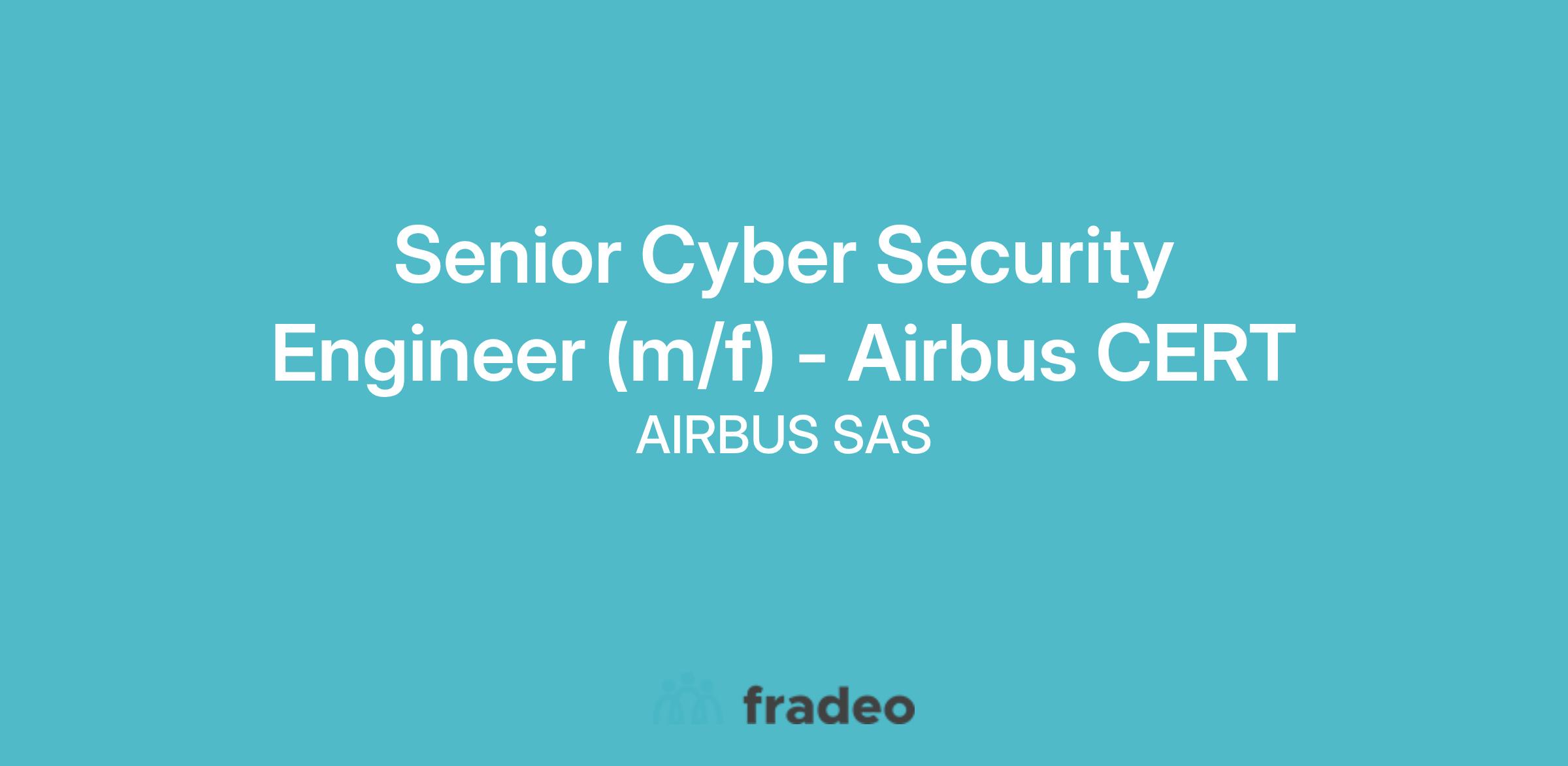 Airbus Commercial Aircraft is looking for a Senior Cyber Security Engineer (f/m) to join t he Airbus CERT (Computer Emergency Response Team) based in Toulouse, France.
