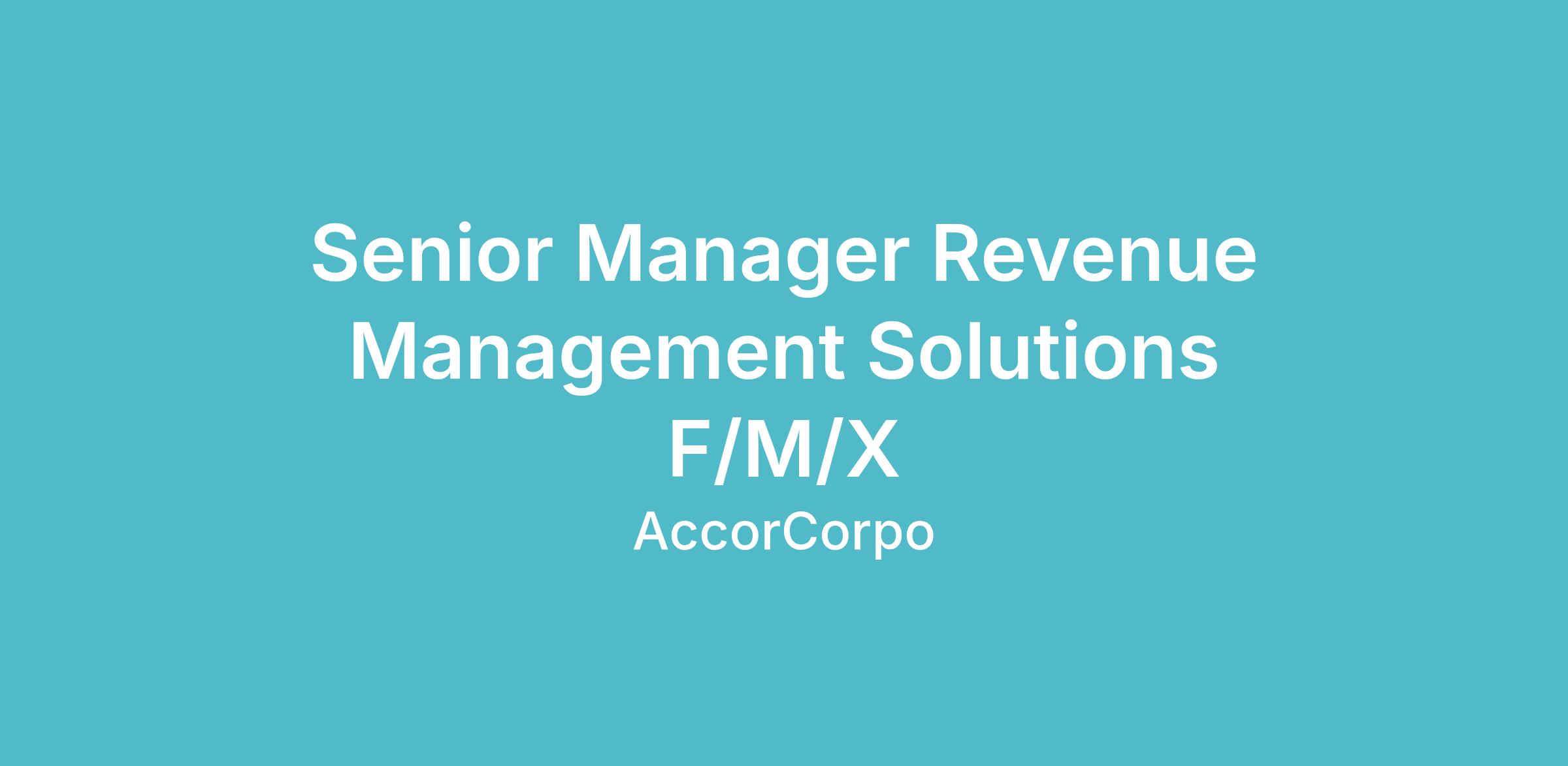 The Senior Manager Revenue Solutions is responsible for steering Accor strategy related to Revenue Management Solutions, with a forward-thinking approach in relation to the evolution of revenue management within the group.